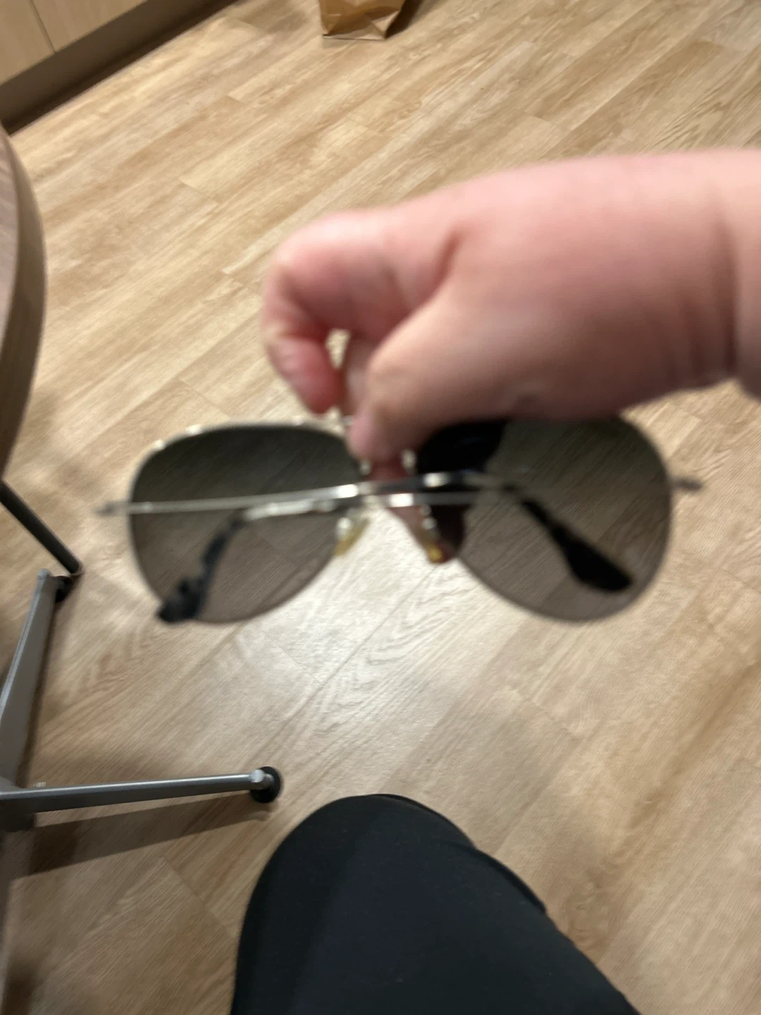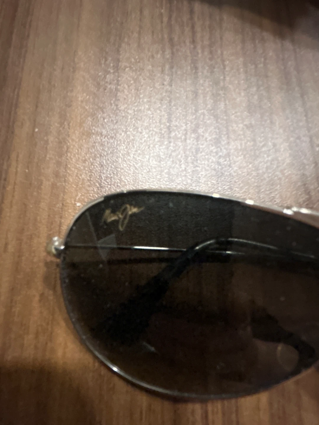 These Maui Jim aviator sunglasses feature dark polarized lenses. They have a classic metal frame with a double bridge. Perfect for sunny days! Minor scratches on lenses but barely visible