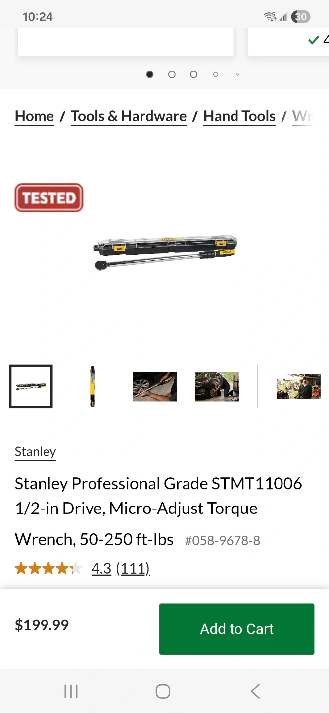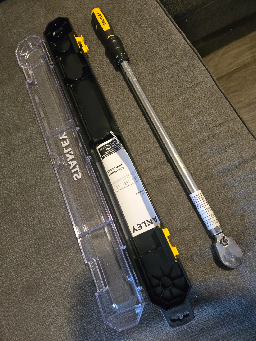 This is a Stanley Professional Grade STMT11006 1/2-in drive torque wrench. It has a micro-adjust feature and a range of 20-250 ft-lbs. Comes with its original case. Only used twice, as new condition.