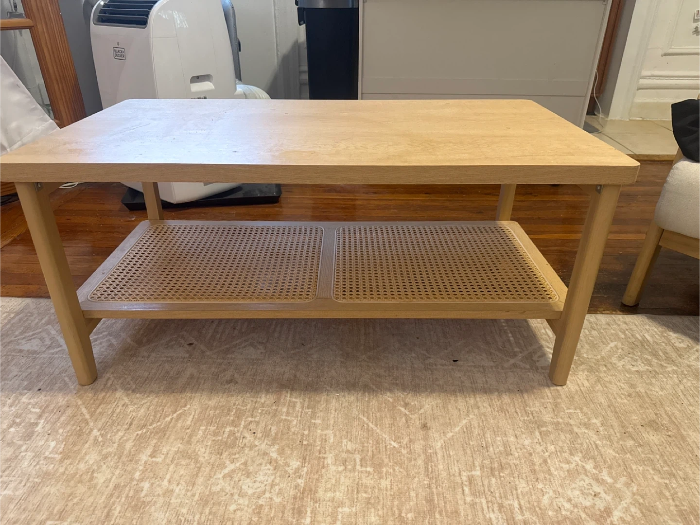 Wooden Coffee Table with Cane Shelf