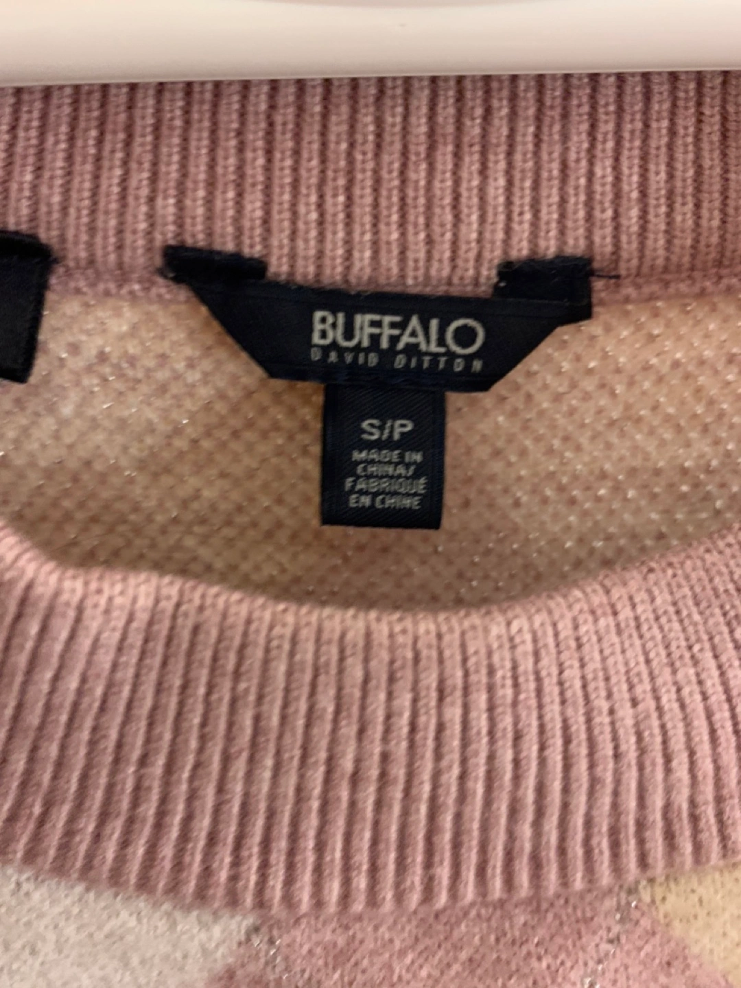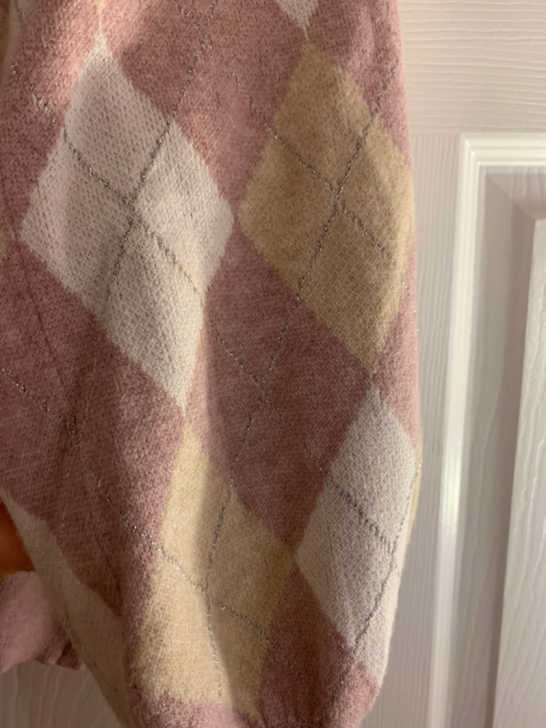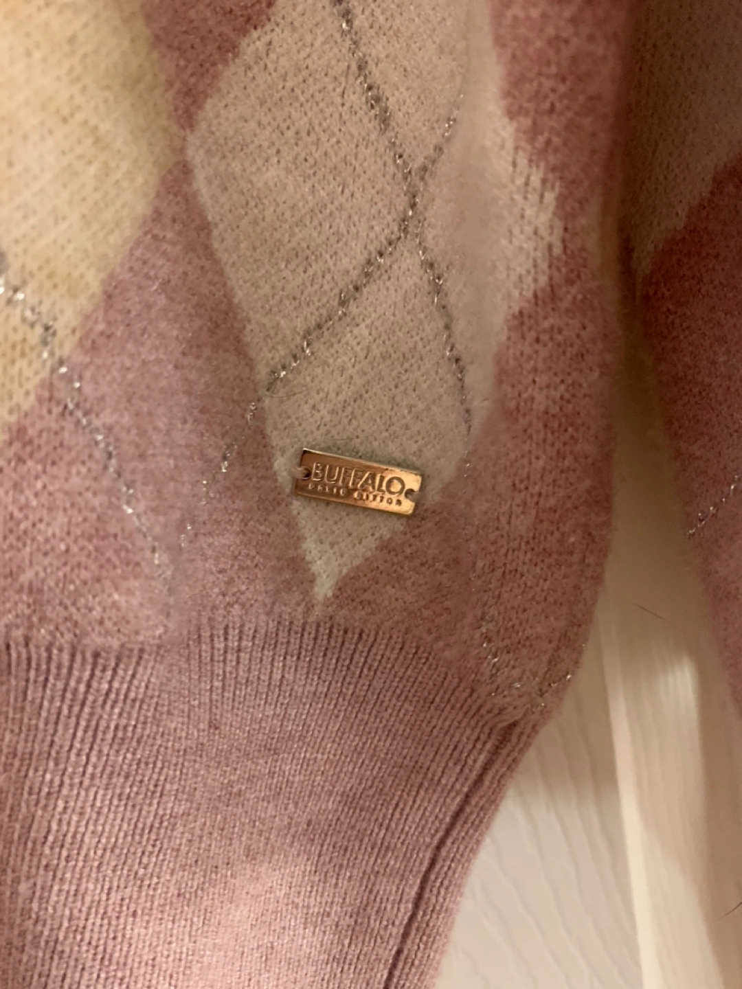 Selling a cute argyle sweater from Buffalo David Bitton. It's a size small and features a lovely pattern with pink, cream, and beige diamonds. Perfect for adding a touch of style to your wardrobe!