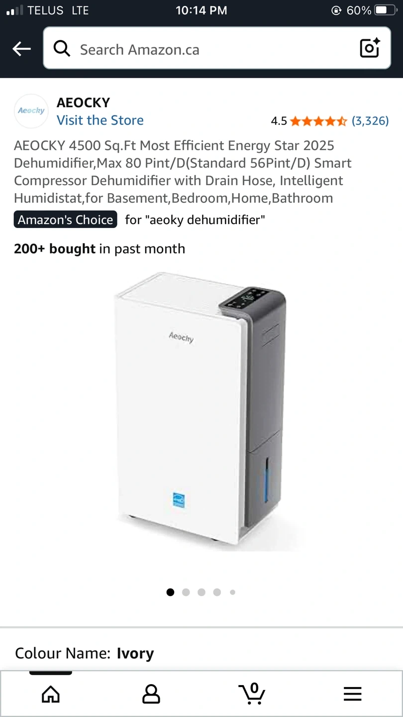 Selling a brand new Aeocky dehumidifier, model RHEA-001! It's still in its original packaging and has never been used. This dehumidifier is designed to be energy efficient and can handle spaces up to 4500 sq ft. It can remove up to 80 pints of moisture per day. It's a smart compressor dehumidifier with a drain hose and an intelligent humidistat, perfect for basements, bedrooms, homes, and bathrooms. Simplify, sustain, and sparkle with this Aeocky! The box is damaged not the item need it gone price is firm last piece cheaper then Amazon