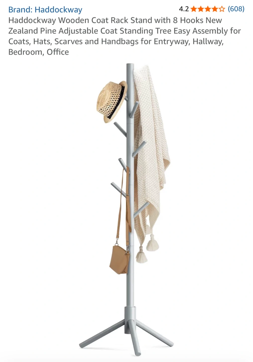 Haddockway Wooden Coat Rack Stand - Grey
