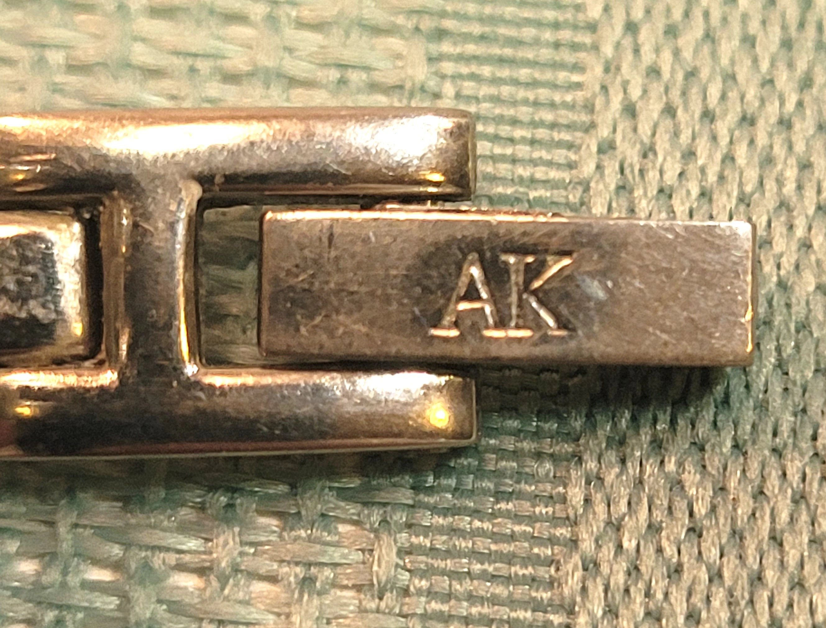 Band: Two-tone silver and gold-plated split-shoulder bangle/bracelet style.