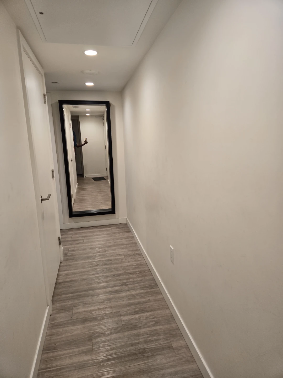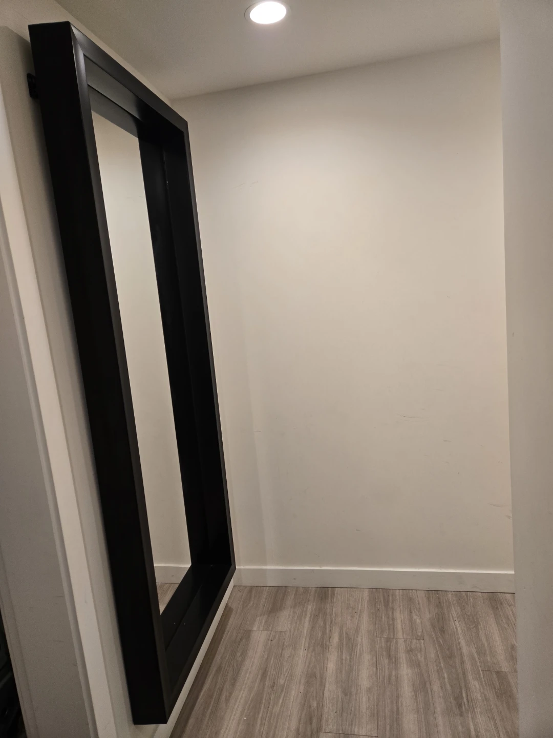 Here's a sleek black-framed mirror that would look great in any room! It's in excellent condition and ready to find a new home.