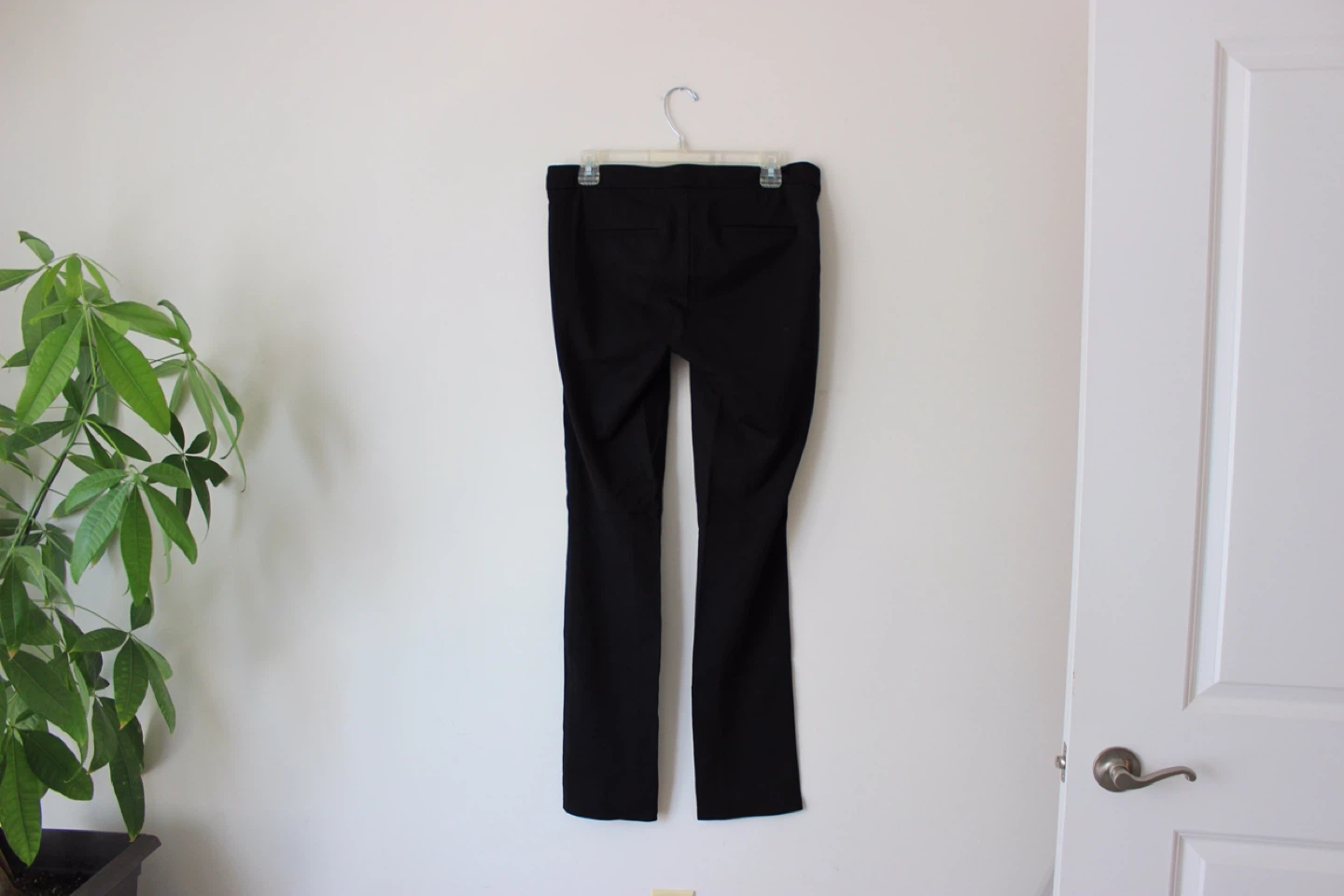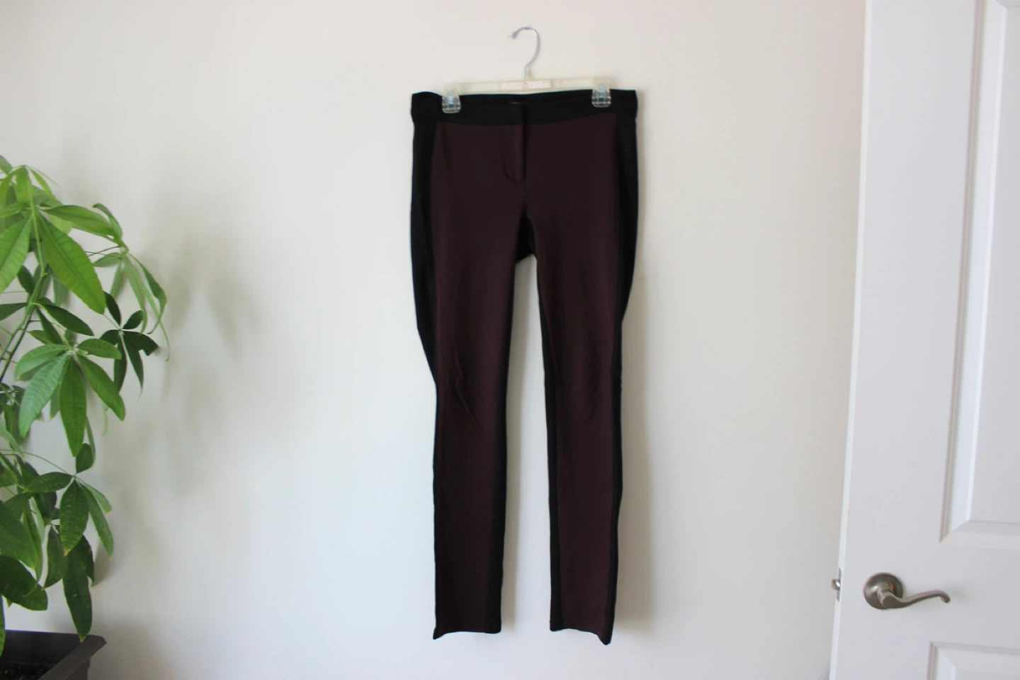 Ann Taylor colourblock pant. Burgundy on the front, black on the back. Double hook eye closure with hidden button. Good stretch. Back pockets. They're in great condition and ready for a new owner! They are black and a size 6.