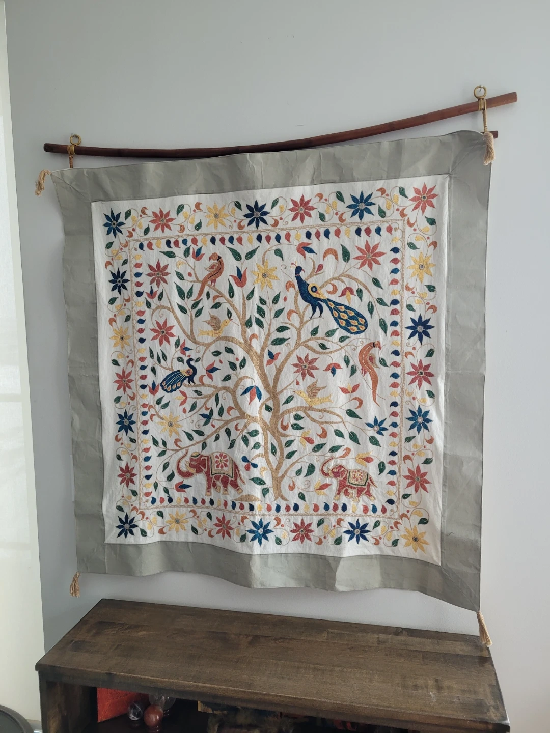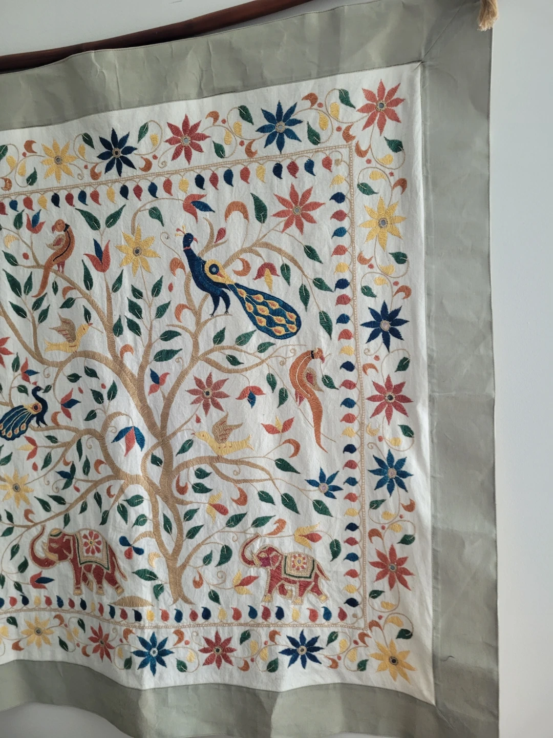 Embroidered Wall Hanging Tapestry with Tree of Life Motif