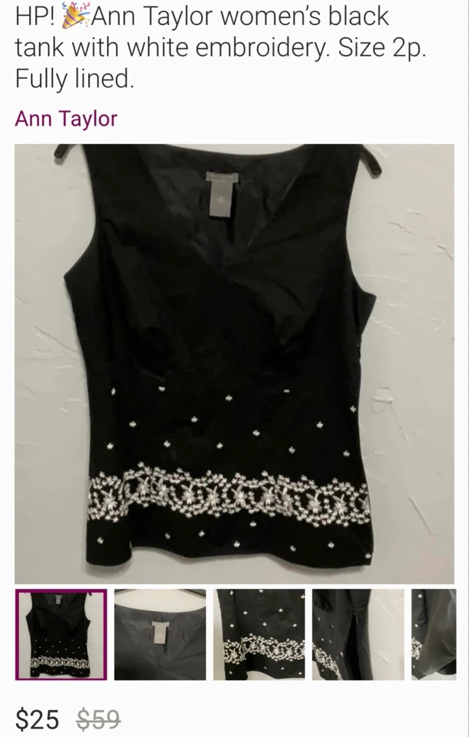 $10 Ann Taylor Black & White embroidery lined tank top.