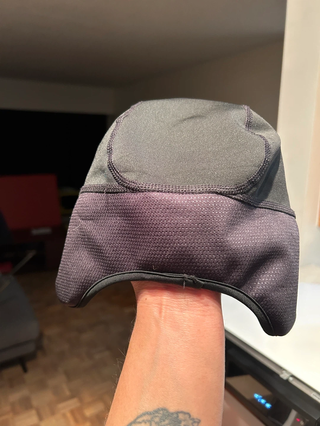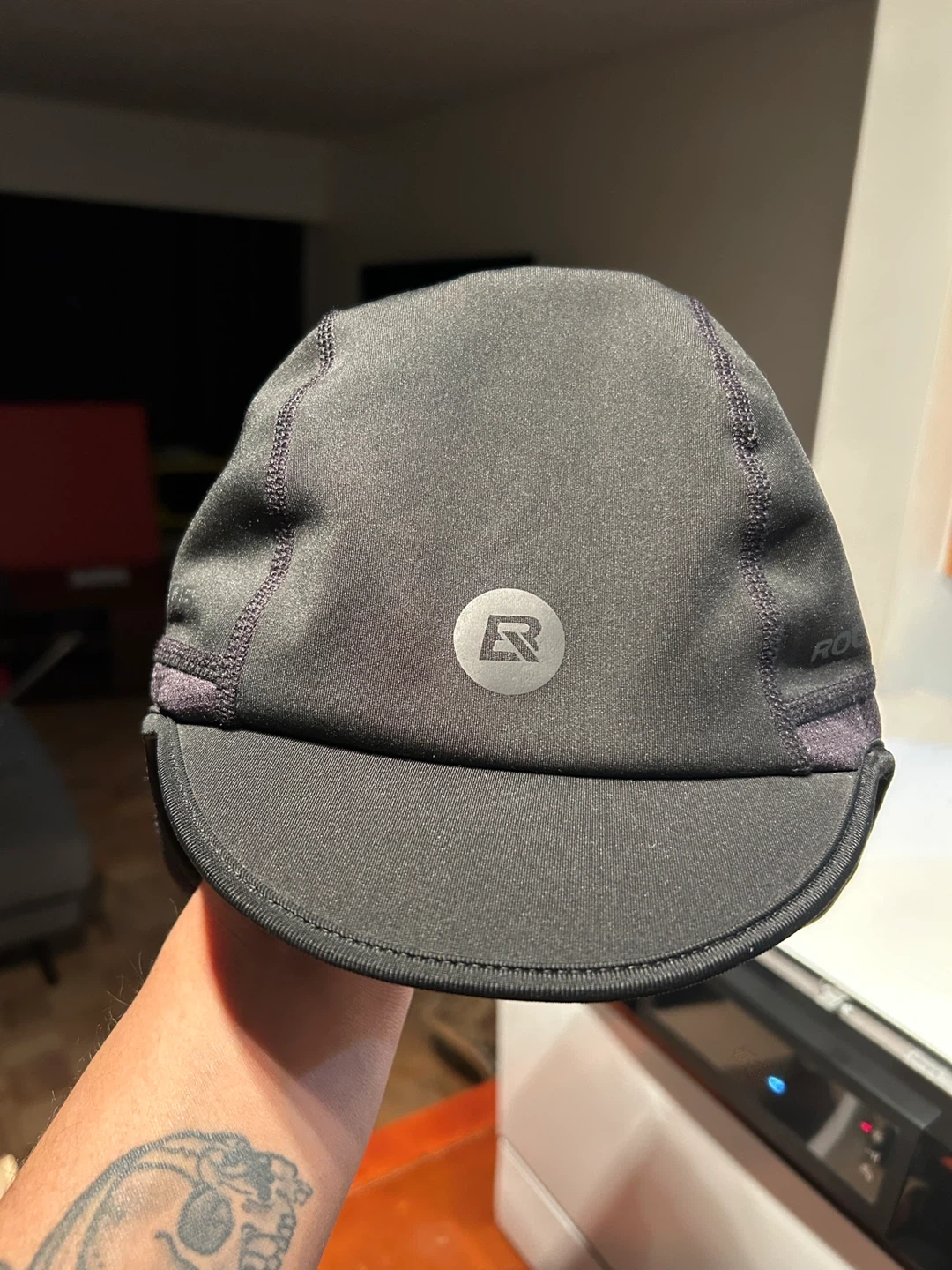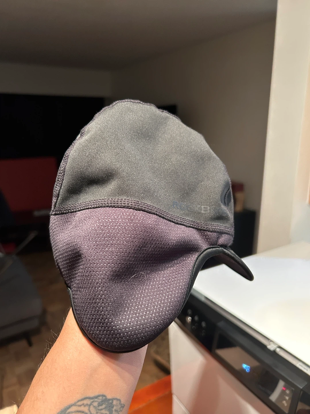 This black skull cap is designed for warmth and comfort. It features a fleece lining and ear protection, with a reflective design on the brim. The cap is one size fits all, suitable for head circumferences of 59-61cm.