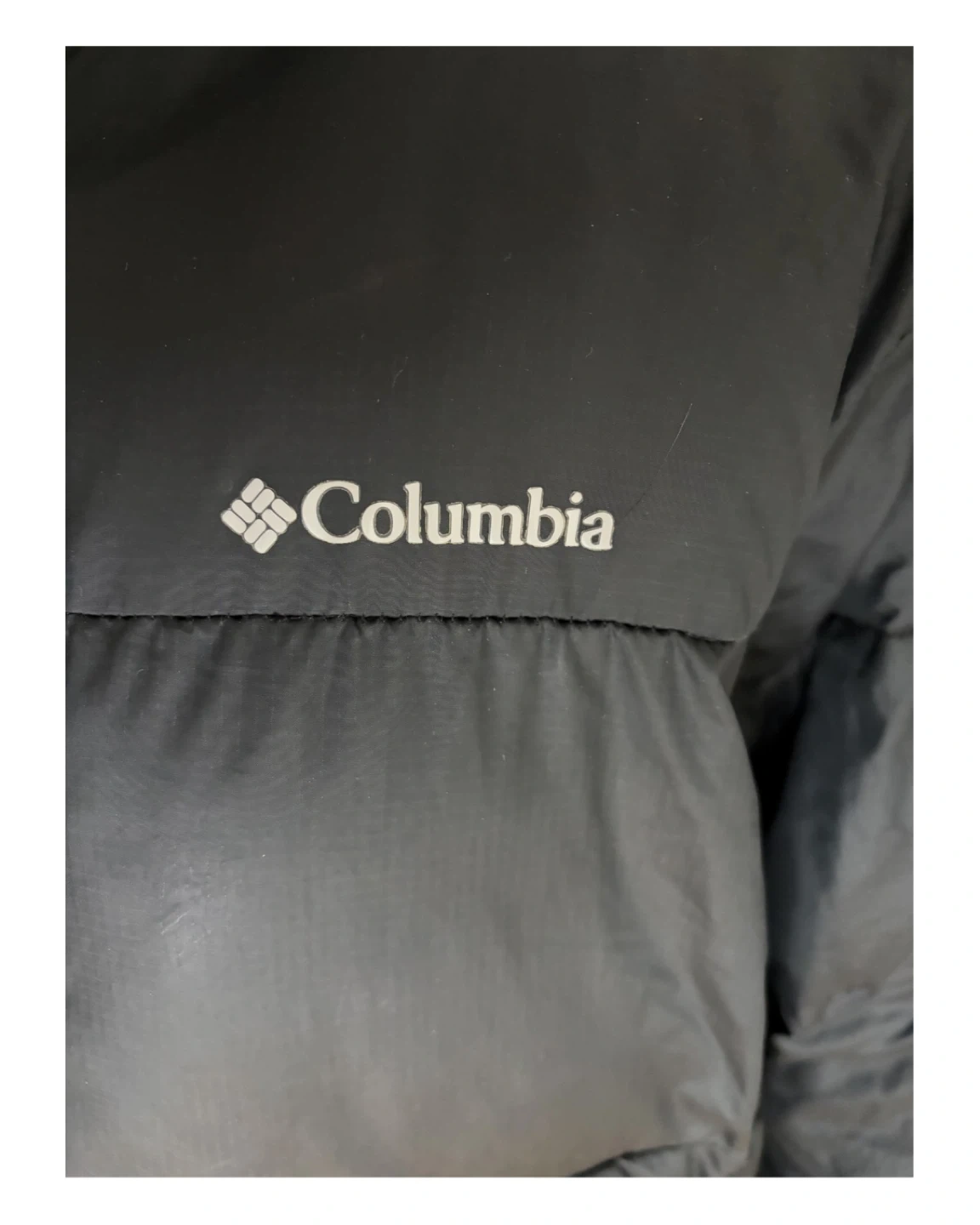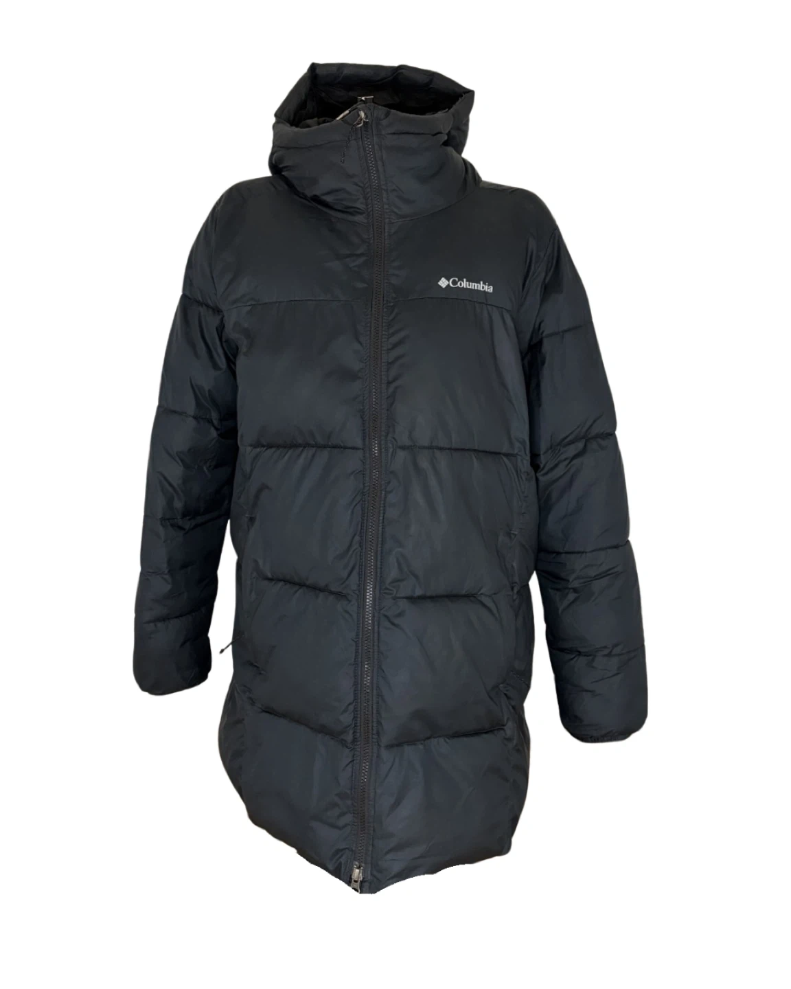 Columbia puffer jacket in black. It's a size large. Made in Vietnam. This jacket is perfect for keeping warm on chilly days!