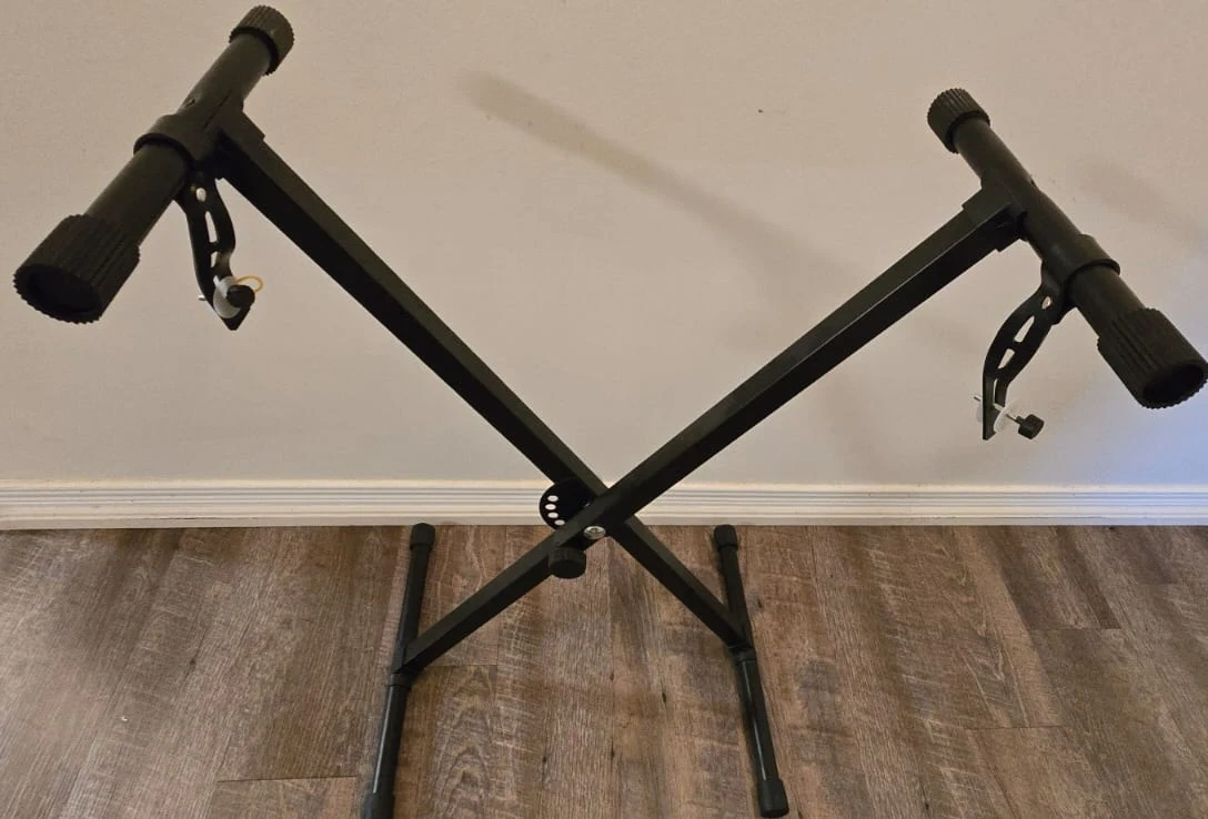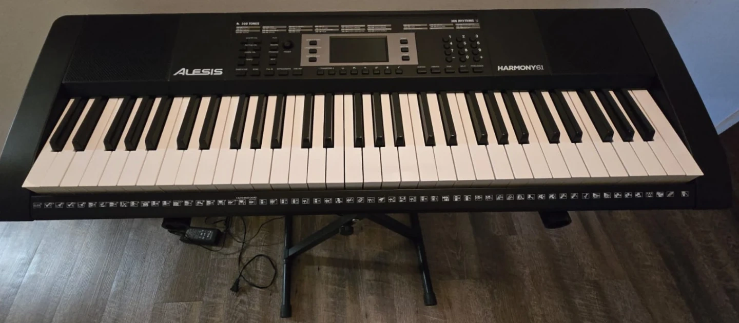 This Alesis Harmony 61 keyboard is a fantastic starter instrument with 61 keys. It comes with an adjustable x-style keyboard stand for easy setup. Perfect for learning to play music!