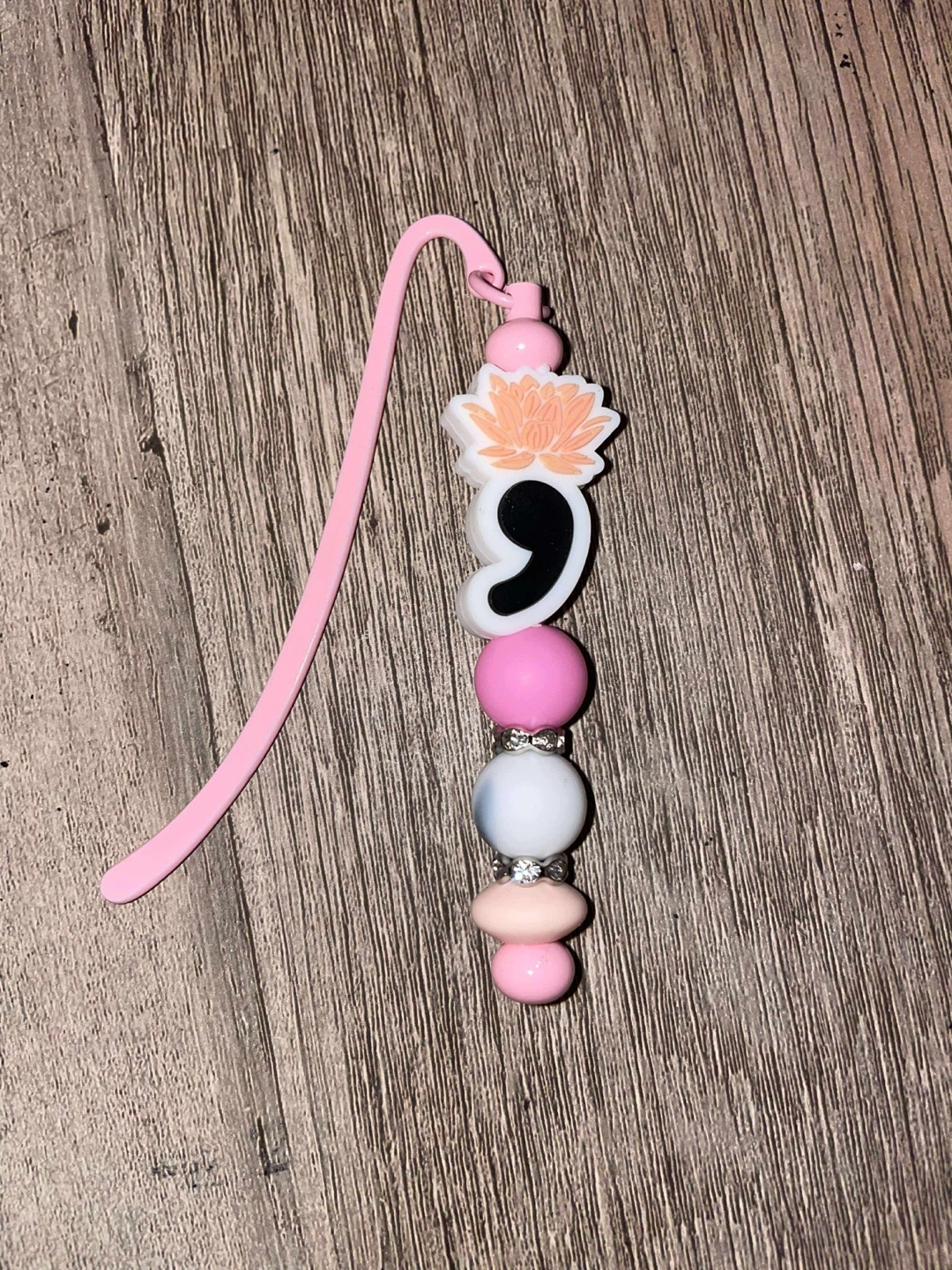 Beaded bookmarks. Each features a metal bookmark with various coloured beads and charms. Perfect for book lovers and adding a personal touch to your reading. They are $12.00 each.