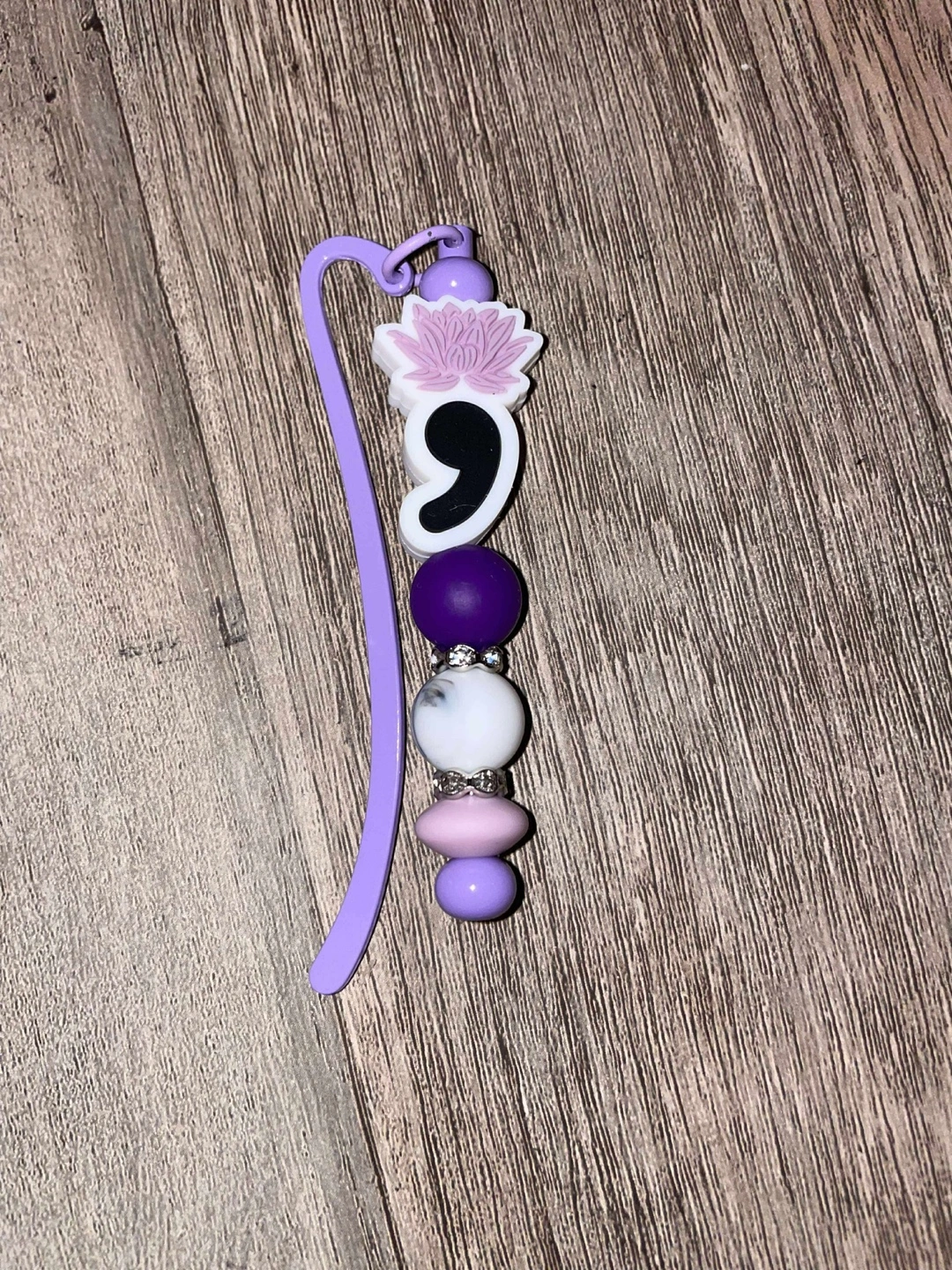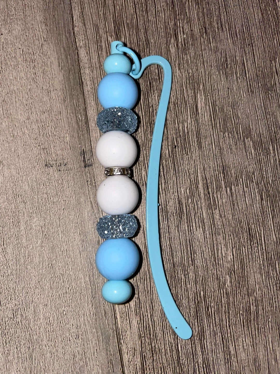 Beaded bookmarks. Each features a metal bookmark with various coloured beads and charms. Perfect for book lovers and adding a personal touch to your reading. They are $12.00 each.