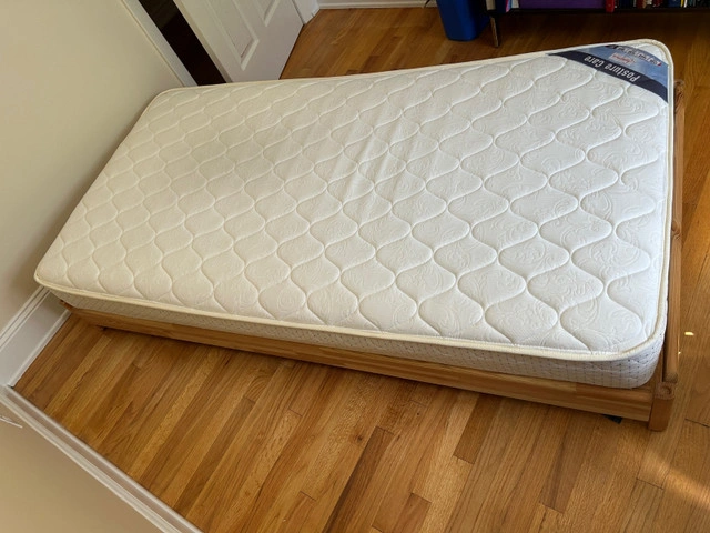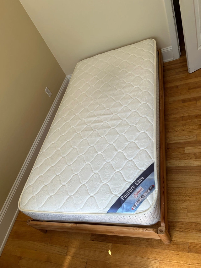 stackable twin pine bedframes + mattresses