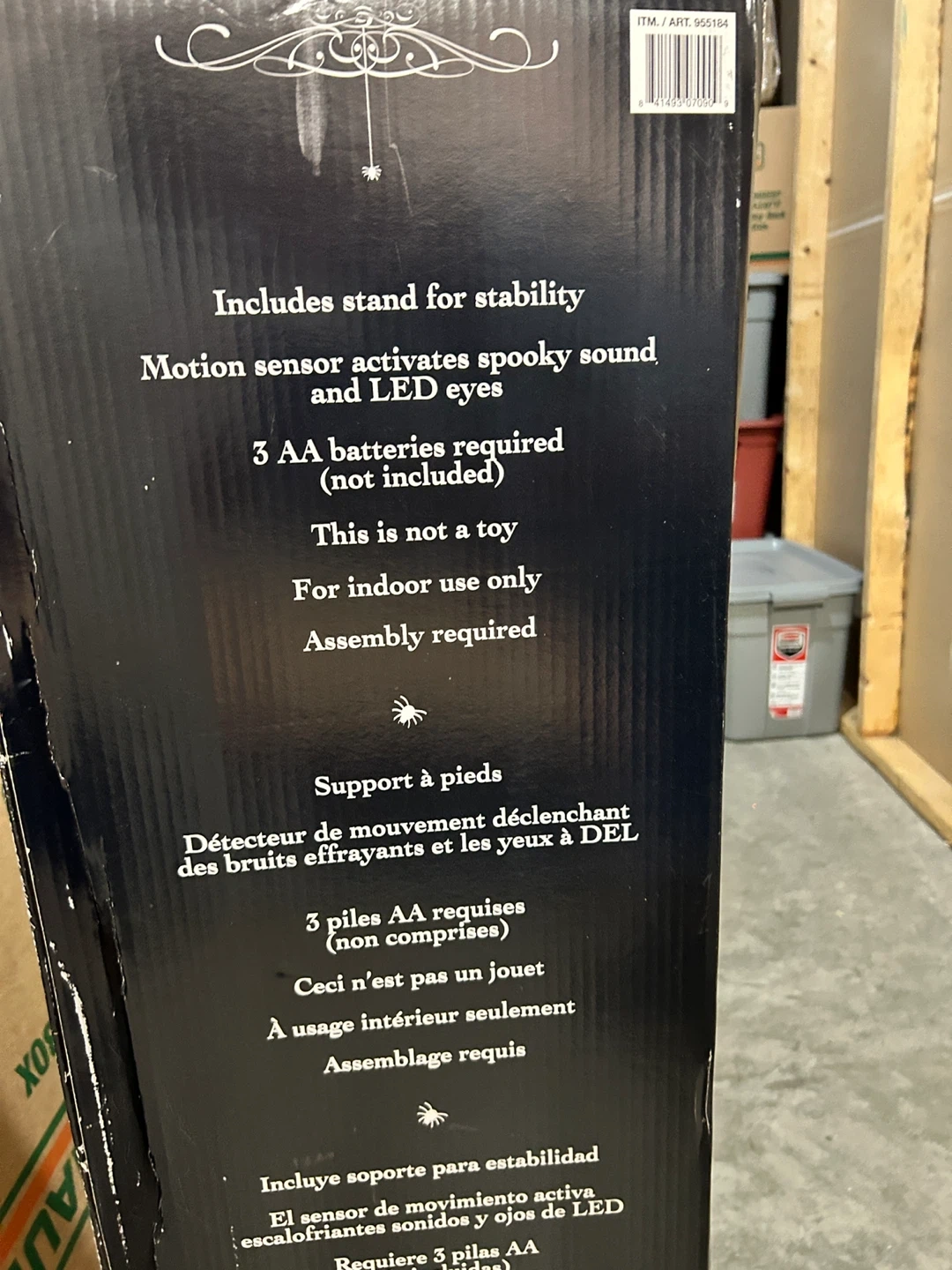 Stacked Skulls with Sound Halloween decoration! It includes a stand for stability. The motion sensor activates spooky sound and LED eyes. Requires 3 AA batteries (not included). For indoor use only. Assembly is required