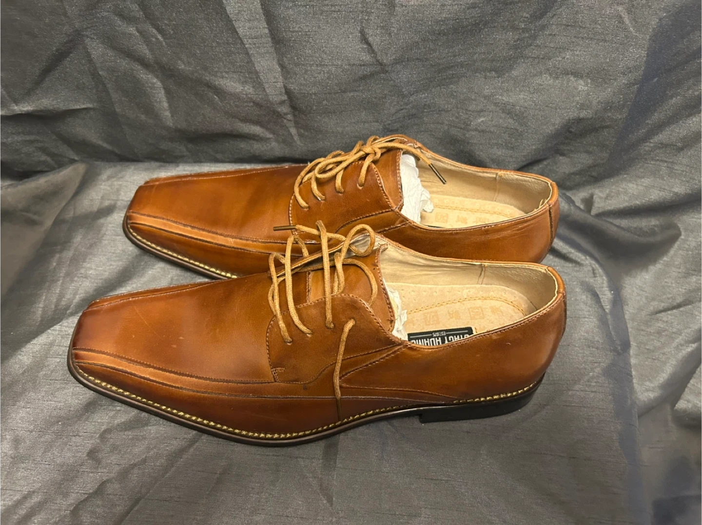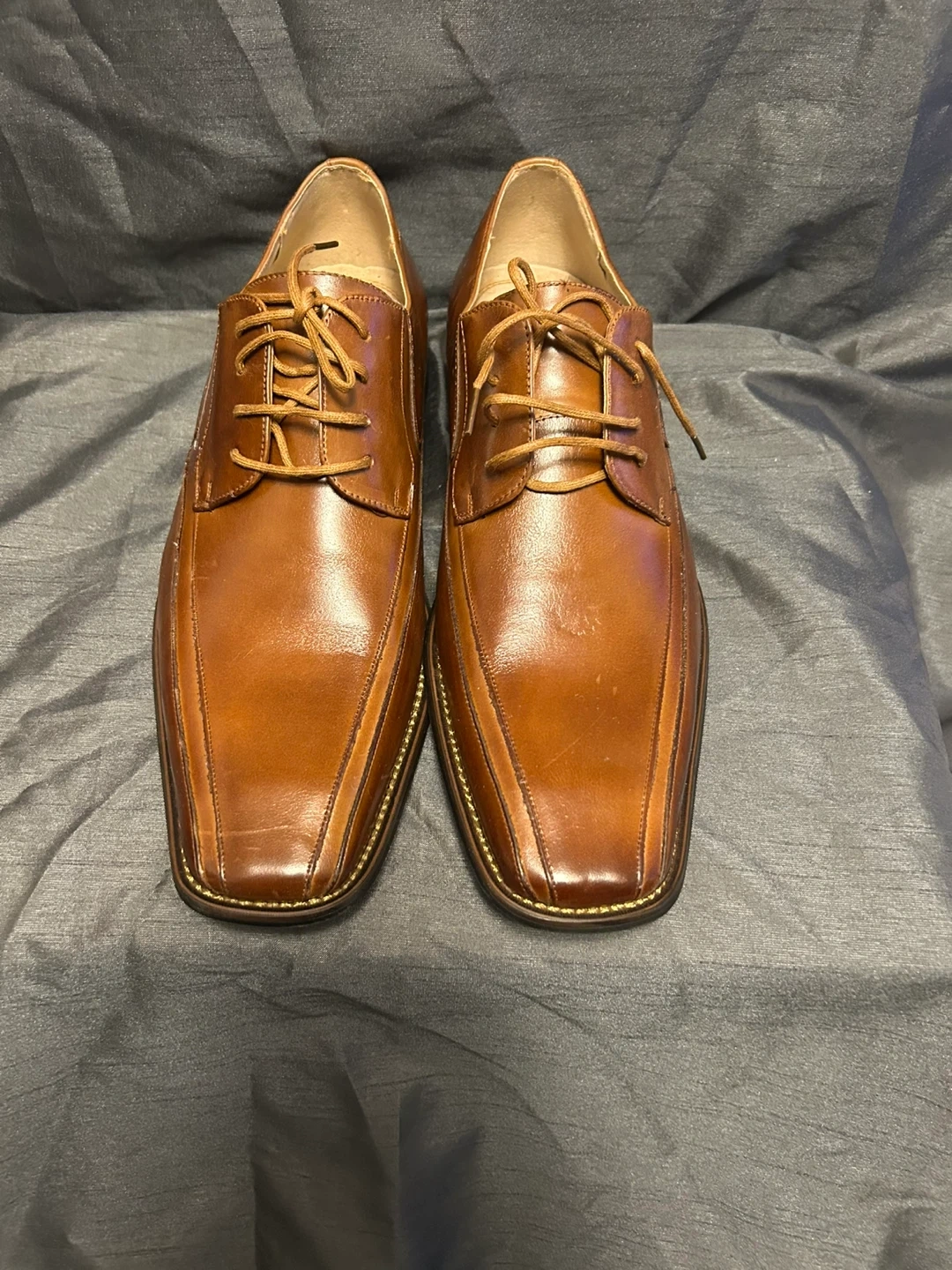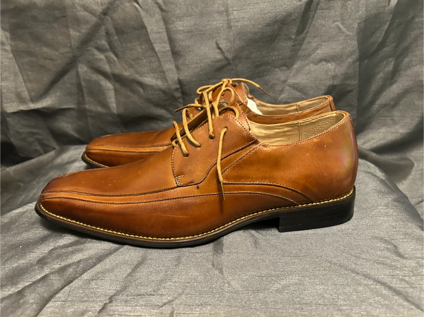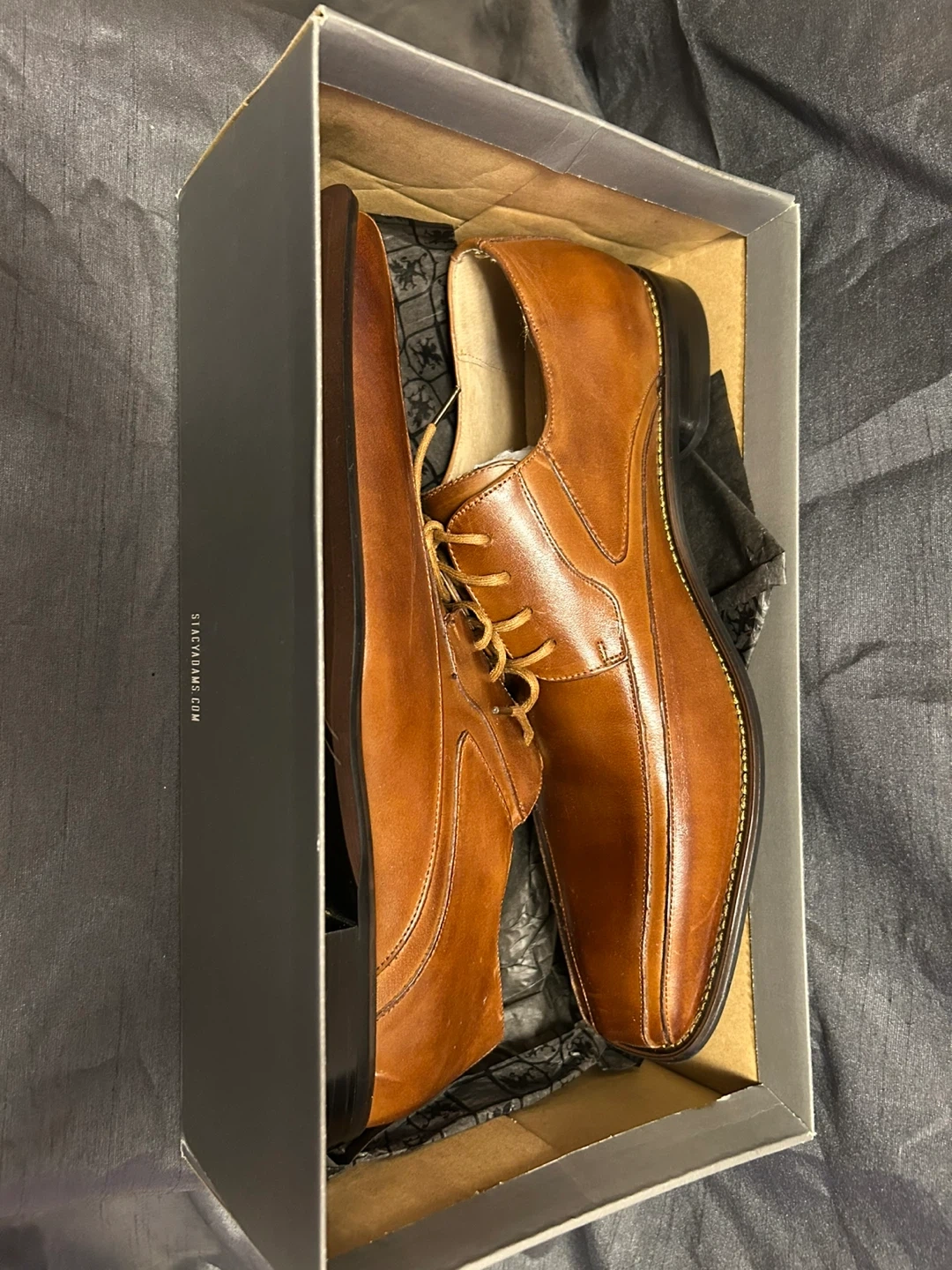 32Here are some Stacy Adams dress shoes in a nice brown leather. They come with their original box. Perfect for formal events or a night out!