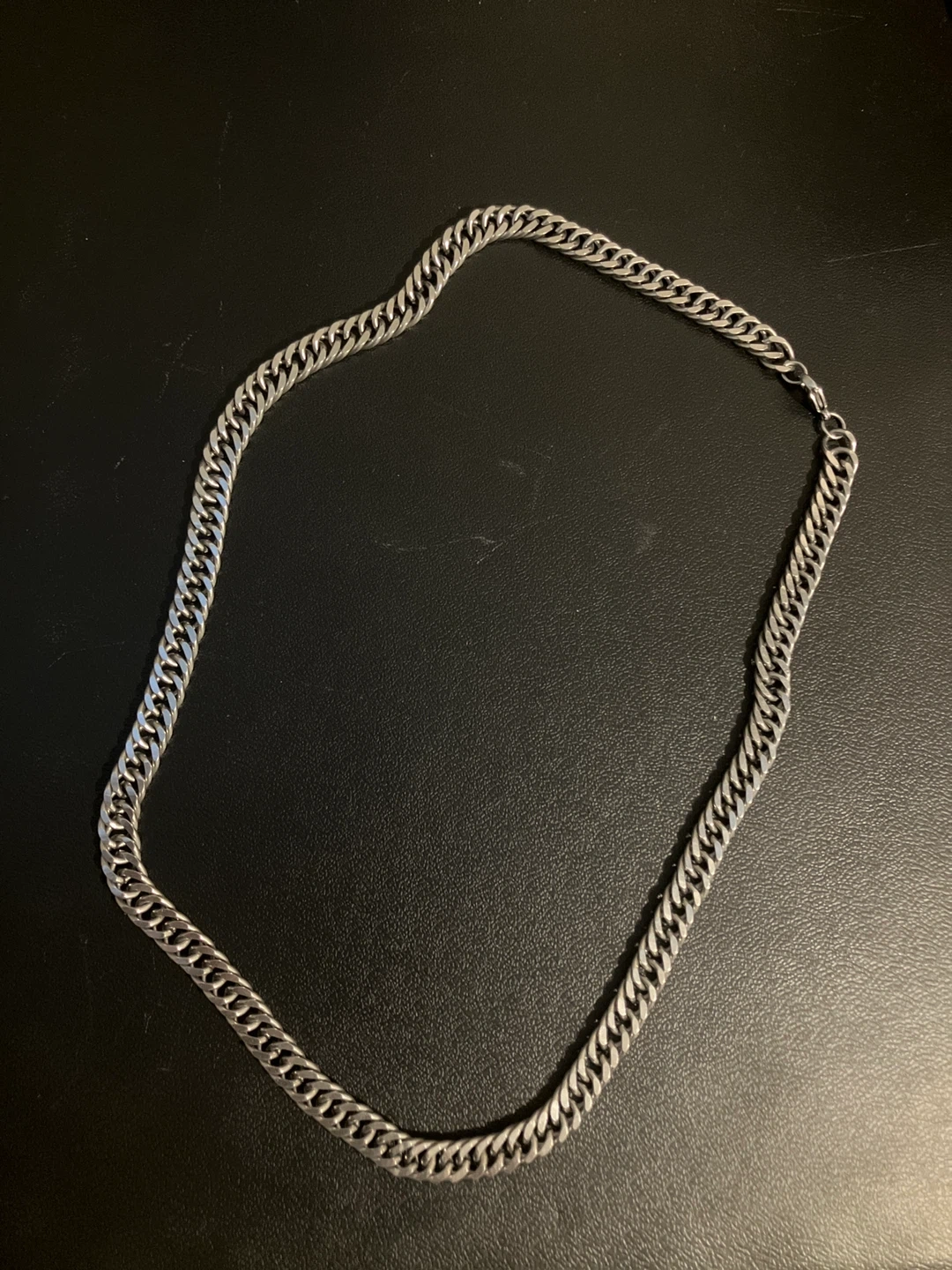 10It’s a silver-coloured chain necklace. It's in great condition. The chain features a classic curb link design.