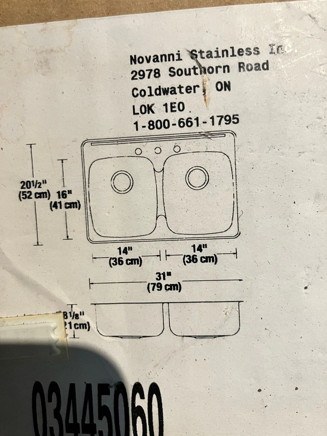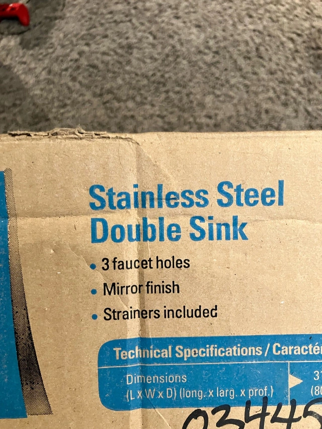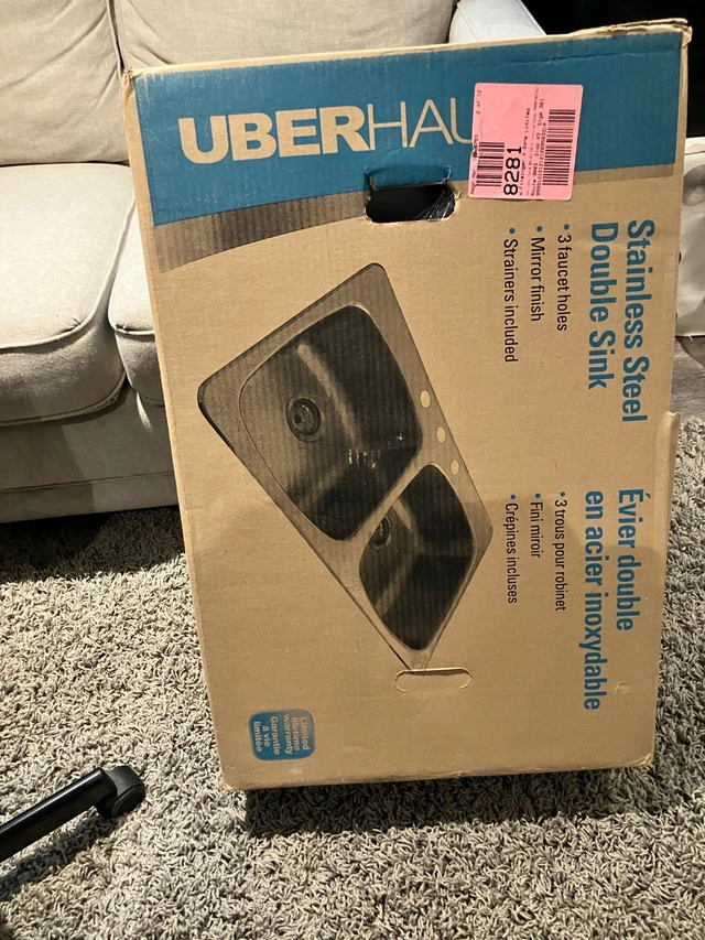 Uber Haus double stainless sink still in box. Dimensions in photos. For Sale By: Owner