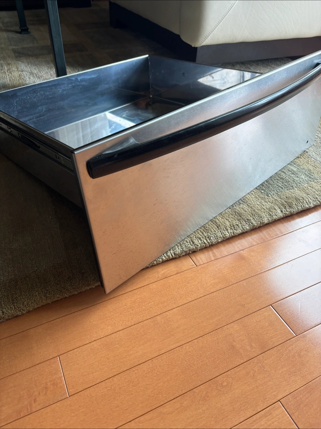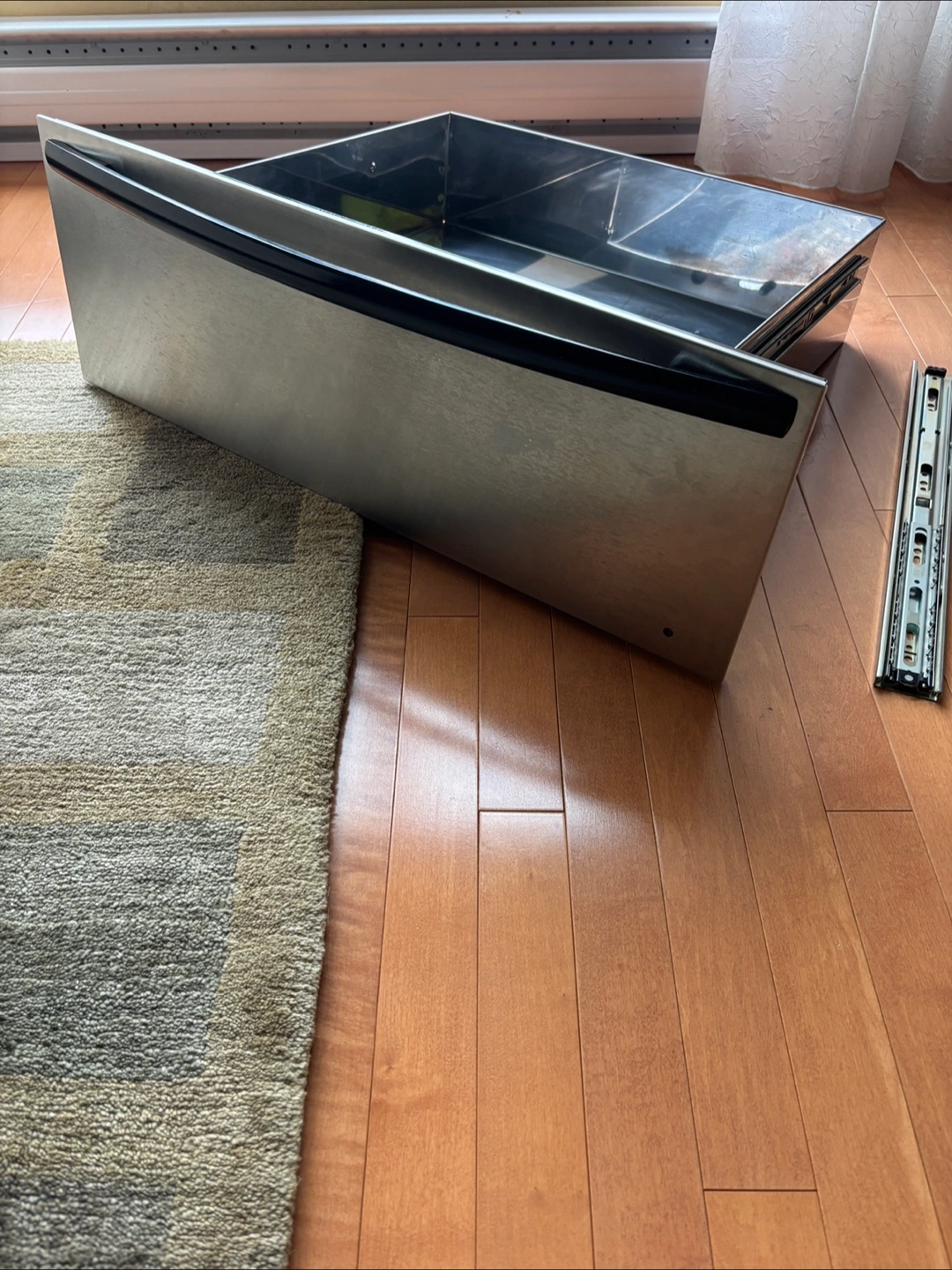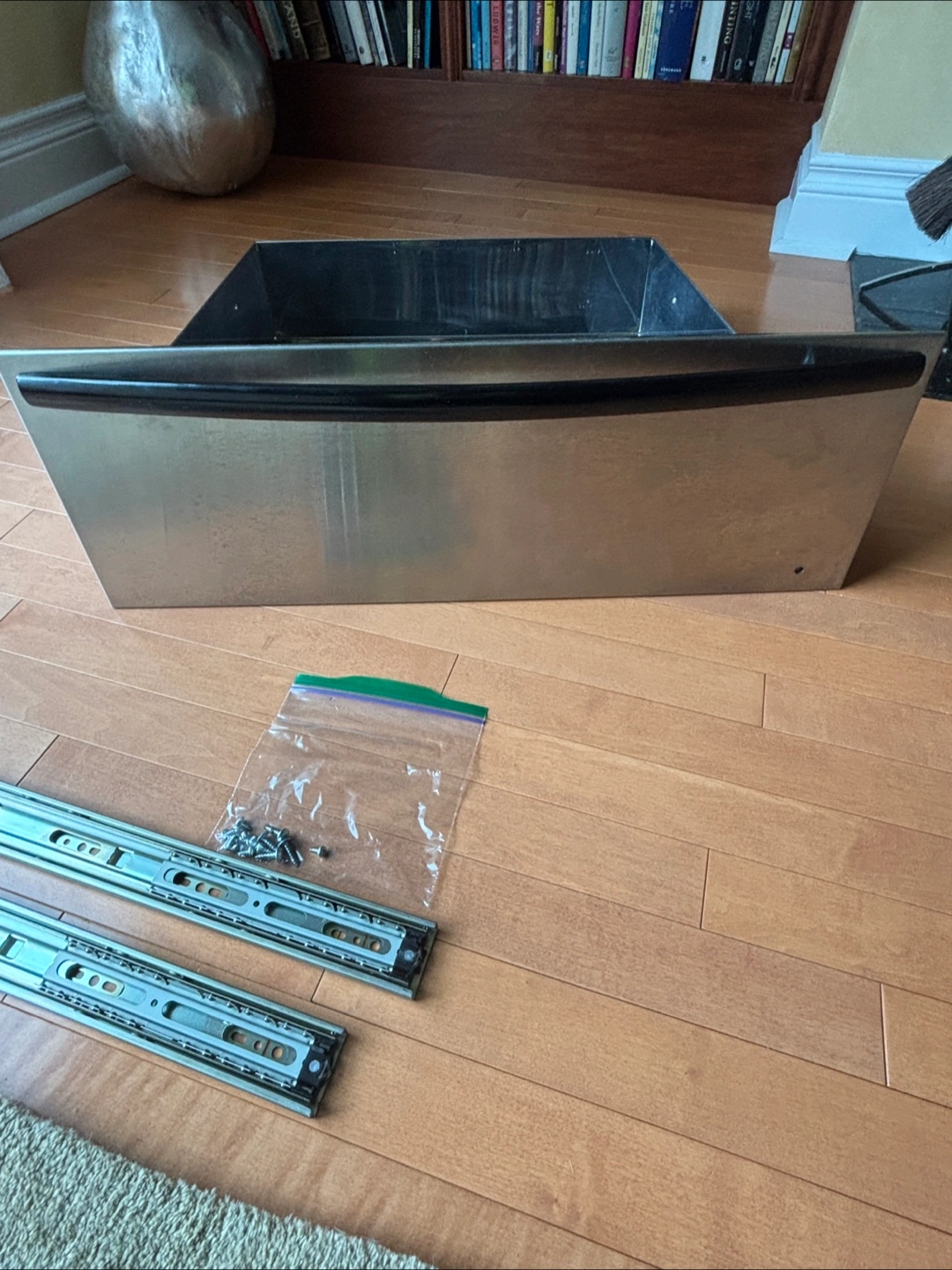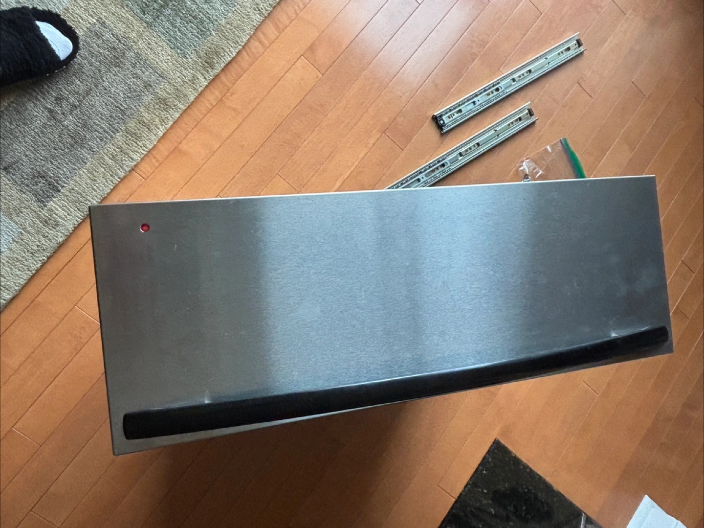 979Selling an all stainless steel drawer, perfect for adding some extra storage! It comes with the drawer slides and all screws for installation. The drawer is in good condition and ready to be installed. It was formerly a warming drawer in its previous life and now a drawer only. It was part of a three piece built in wall oven unit. The measurements are: Front panel with black handle: 27 x 8 5/16” Drawer length: 21 “ Drawer: 19 1/2 x 20 1/2 x 5” Track: 17 1/2 inches length Pickup only in the St Lawrence market area of downtown Toronto. Cash only