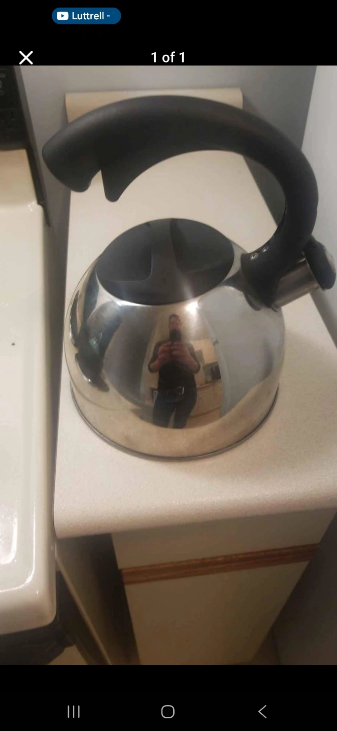 70Silver stainless steel kettle. Features a comfortable black handle. Great for stovetop use. free ! hope it helps ! only used to about ten times
