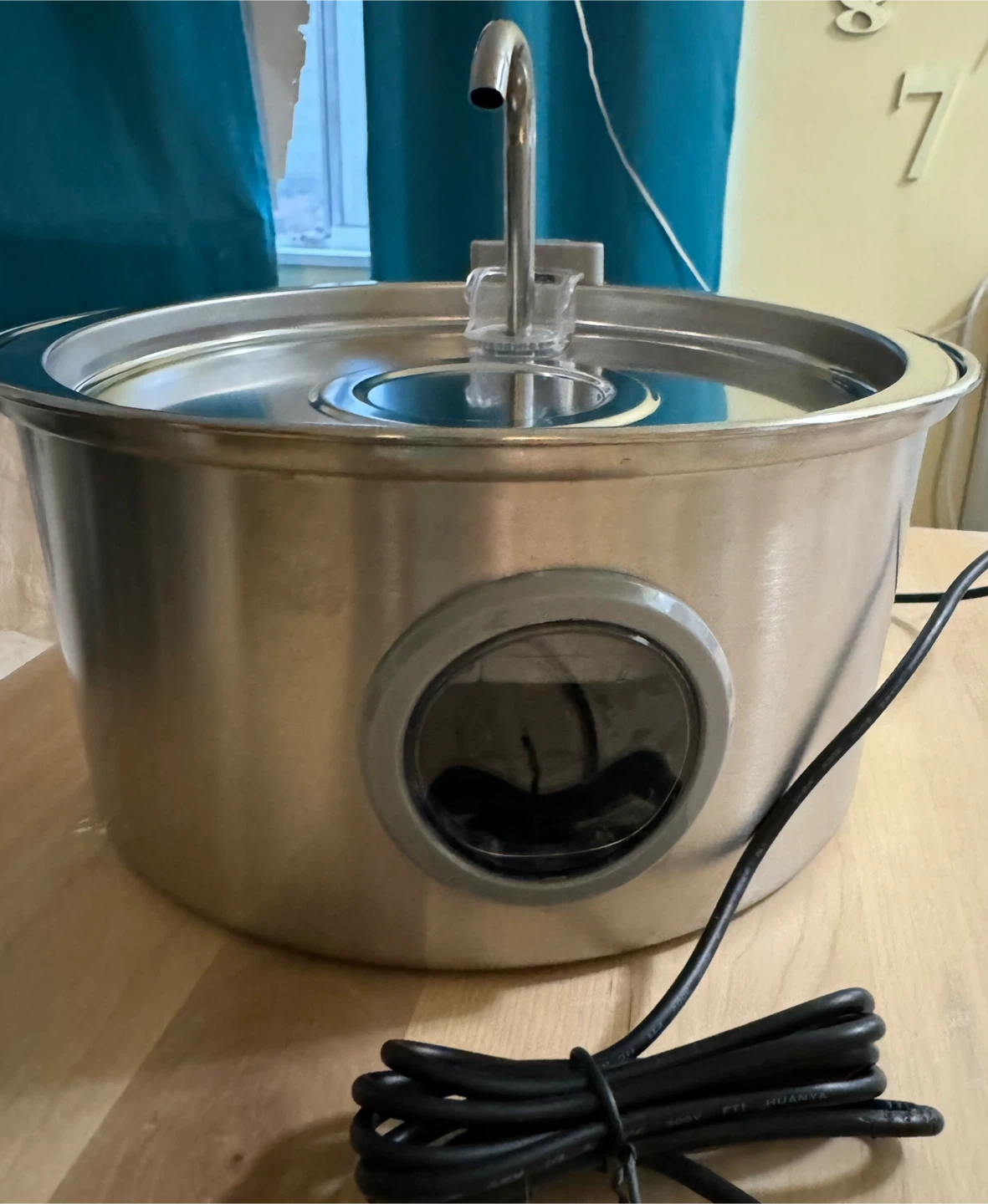 43Selling a pet water fountain made of stainless steel. It's in great shape and ready to keep your furry friend hydrated! Big size.