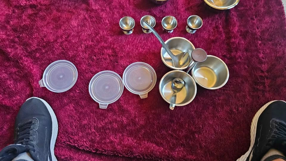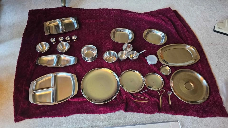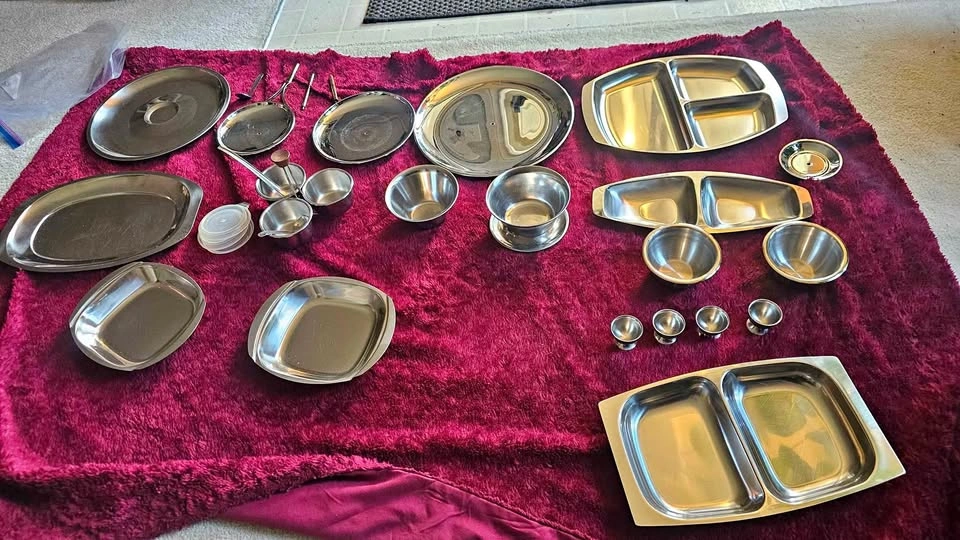 60Vintage Stainless Steel 3-Tier Cake Stand Set with Dip Bowls, Spoons & Lids - Excellent Condition! Cake tier alone is 50-75$ on: platforms: eBay, Etsy, Facebook Marketplace Unique opportunity to own a high-quality, vintage stainless steel cake tier set! Perfect for displaying cakes, pastries, and appetizers. Includes several dip bowls, 3 spoons, and lids. Excellent condition, with minimal signs of wear. A must-have for baking enthusiasts, party hosts, and vintage collectors! Also included is 4 stainless steel egg servers. In perfect condition.