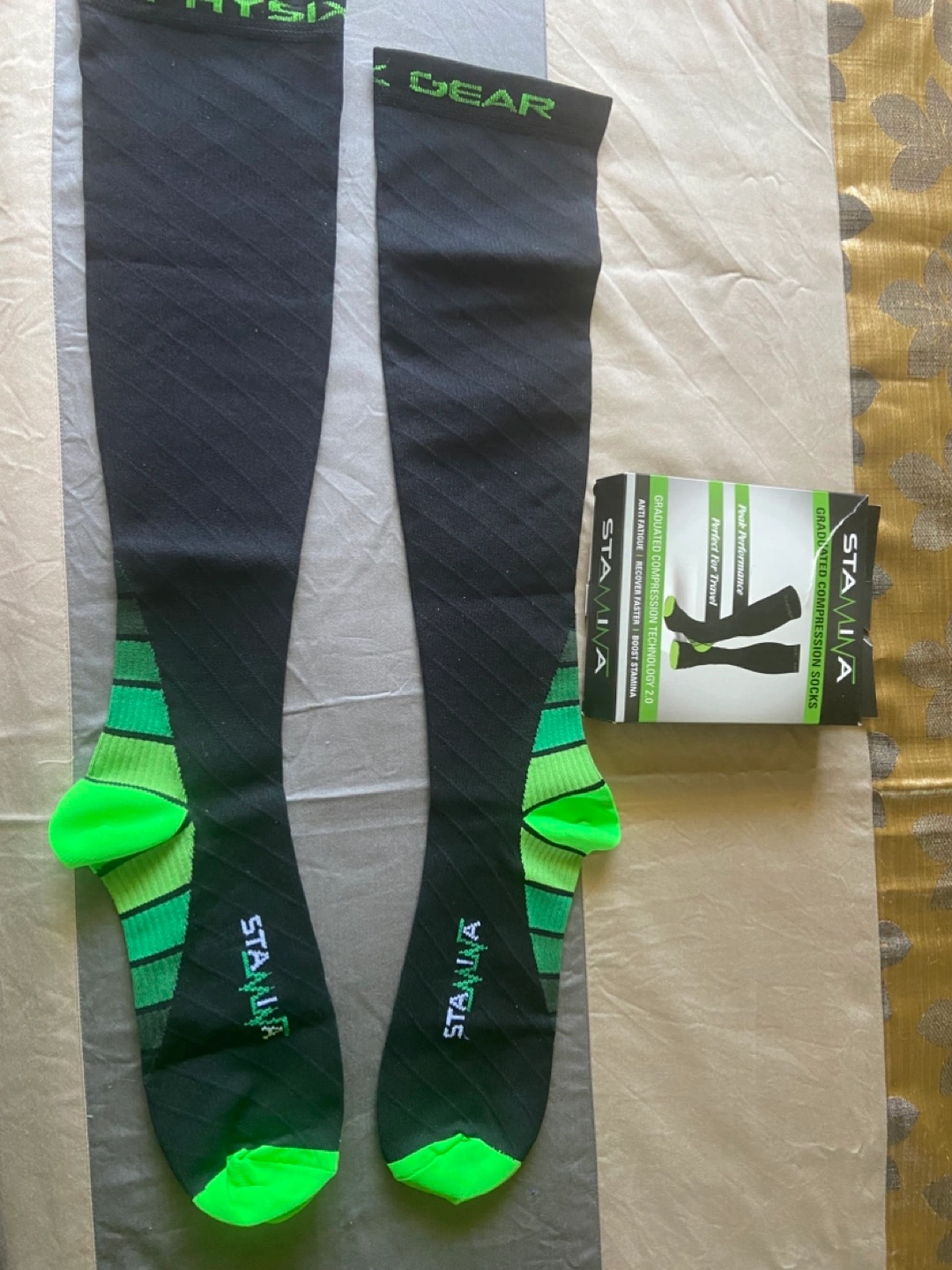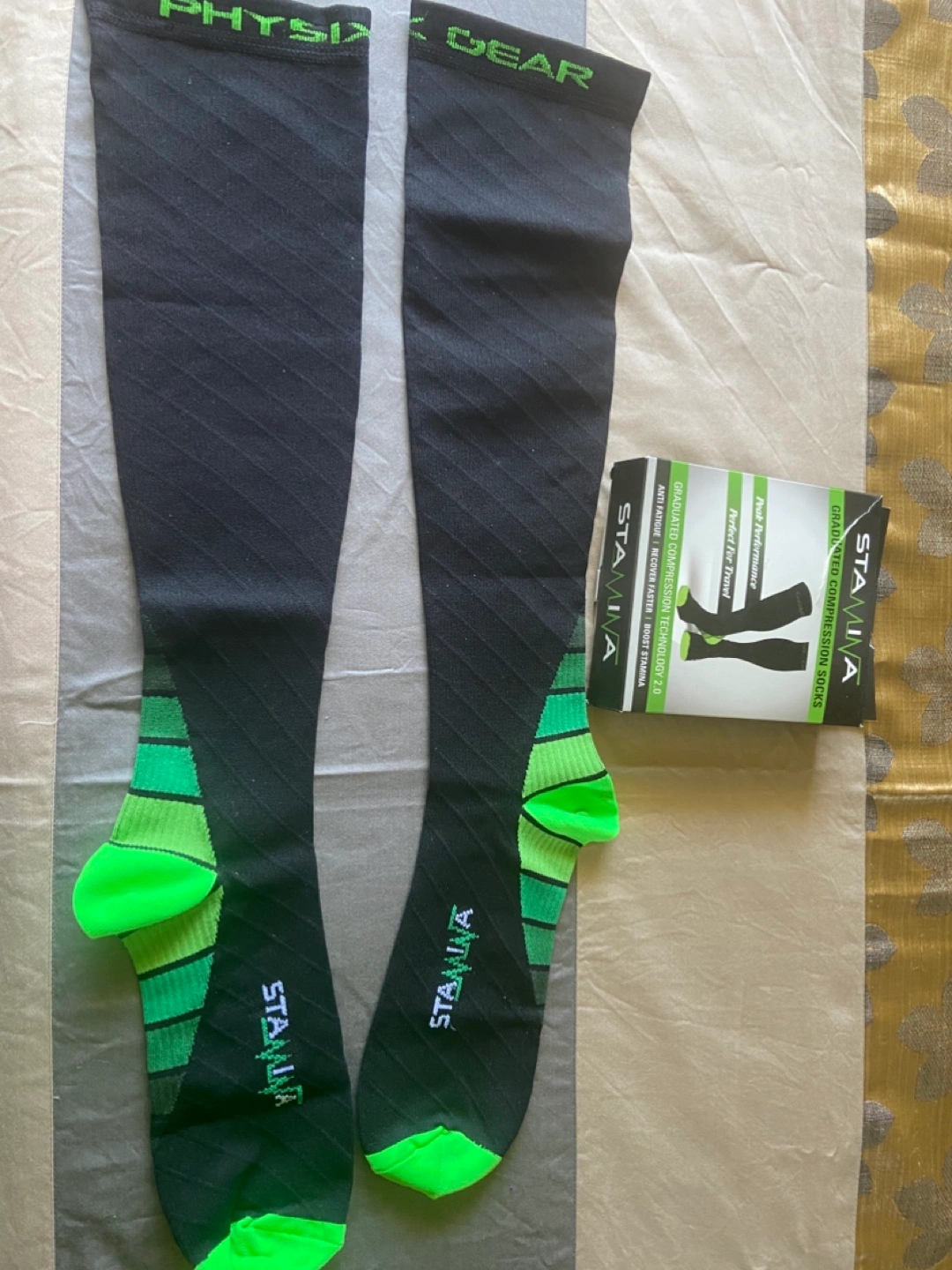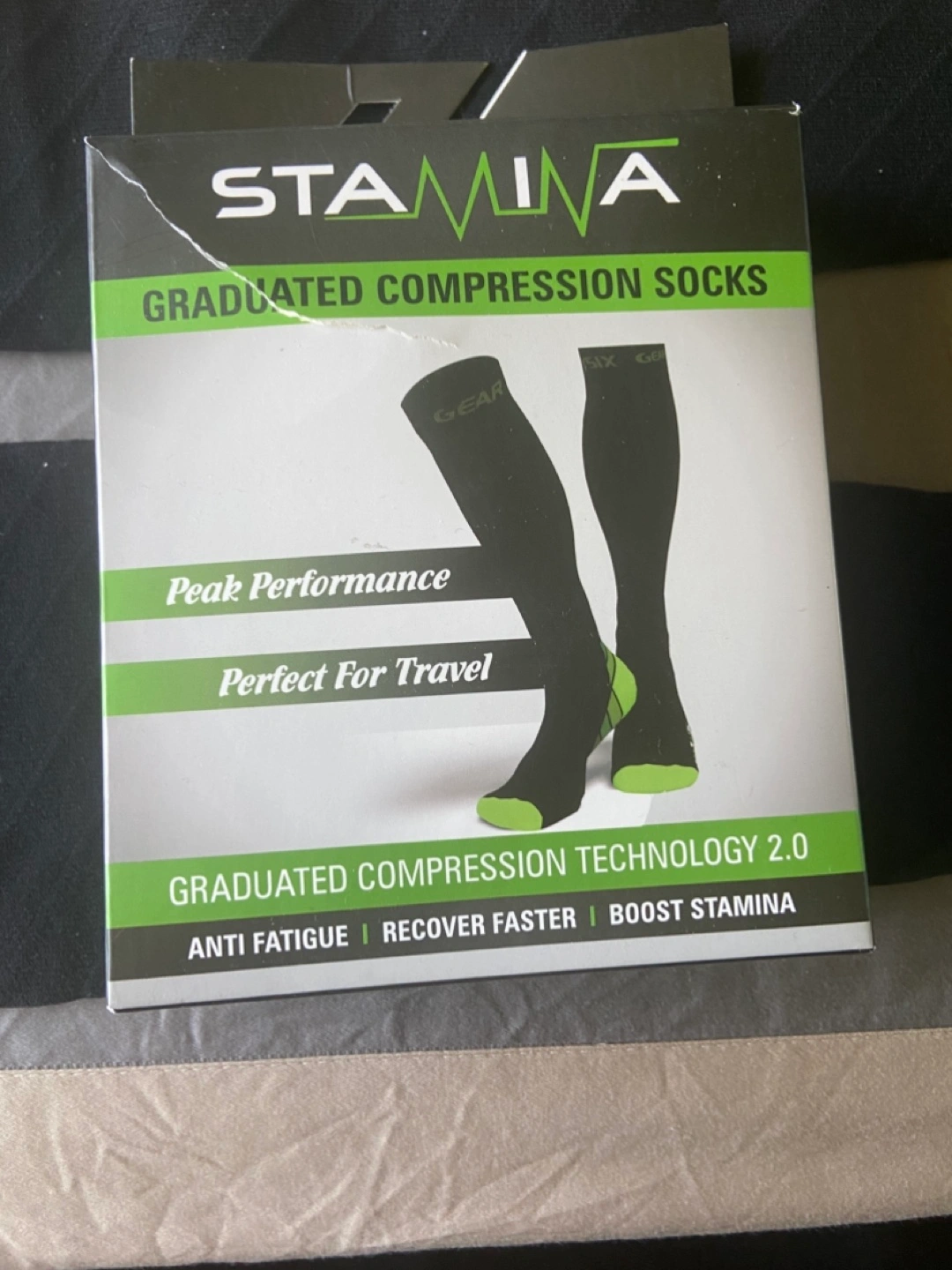 New Stamina graduated compression socks. Peak performance. Perfect for travel. Anti-fatigue, recover faster, boost stamina. Designed for running, cycling, walking, pre & postnatal, travel, and prolonged standing. Size L/XL