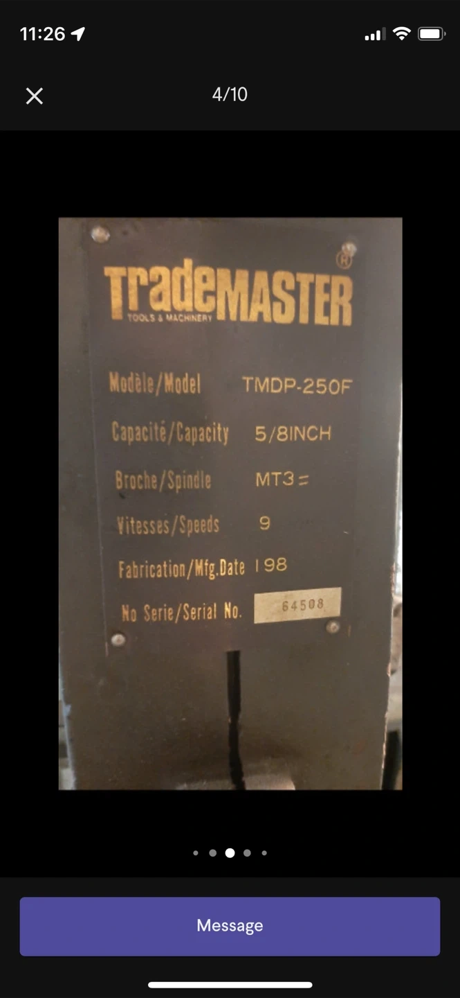 ‼️PLEASE CONTACT FOR PRICE‼️ Floor type Stand drills for sale: First stand drill with 1/2 inch drill chuck and 115 volt motor. First stand drill with 1/2 inch drill chuck and 575 volt motor. TradeMaster stand drill with 1/2 drill chuck and 115 volt motor. ‼️PLEASE CONTACT FOR PRICE‼️