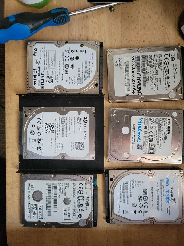 10Standard Hard Drives Hard drives without Windows $20 Hard Drives with Windows 11. $45 Or make me a Reasonable offer. Don't waste your time Lowballing. All are available now in Red Deer. Pickup is in Westpark area Red Deer 587 800 9244 Thnx for looking . .