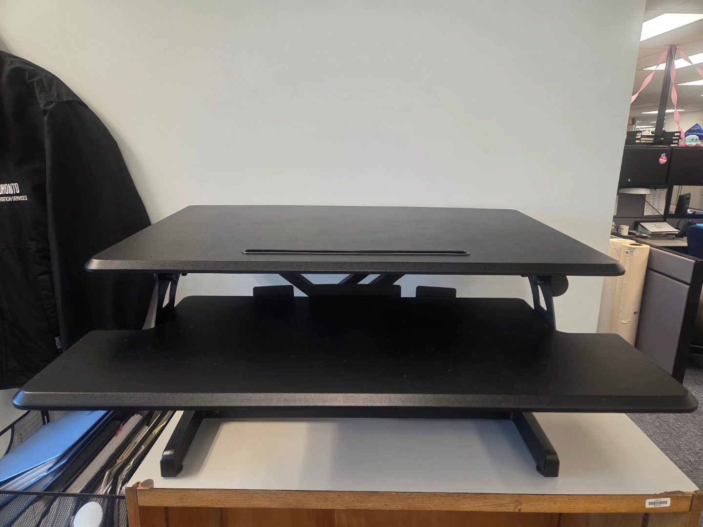 Gently used 30 inches wide Standing Desk Converter, Sit Stand Up Desk with Adjustable Height Tabletop,Monitor Desktop Riser Platform Workstation with Keyboard Tray. Perfect condition. Amazon sells these for 120 plus tax and you can get it for less than half the price. Pickup is near Coxwell Ave and Mortimer Ave in East York