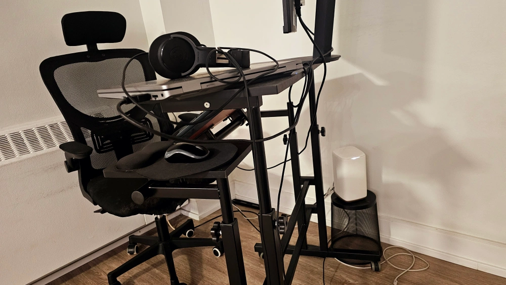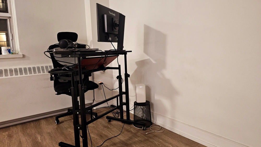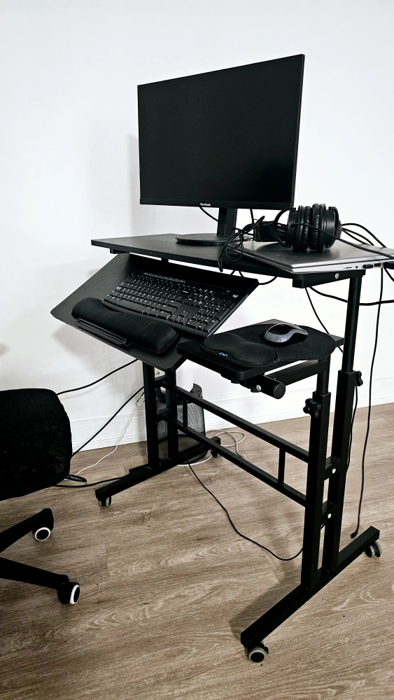 83SogesHome 31.5 inch Mobile Standing Desk Adjustable Computer Desk Rolling Laptop Cart Portable Laptop Stand on Wheels Home Office Workstation (Black,Standard)+ free office chair You can compare the prices on internet, this item is worth $130 !!!