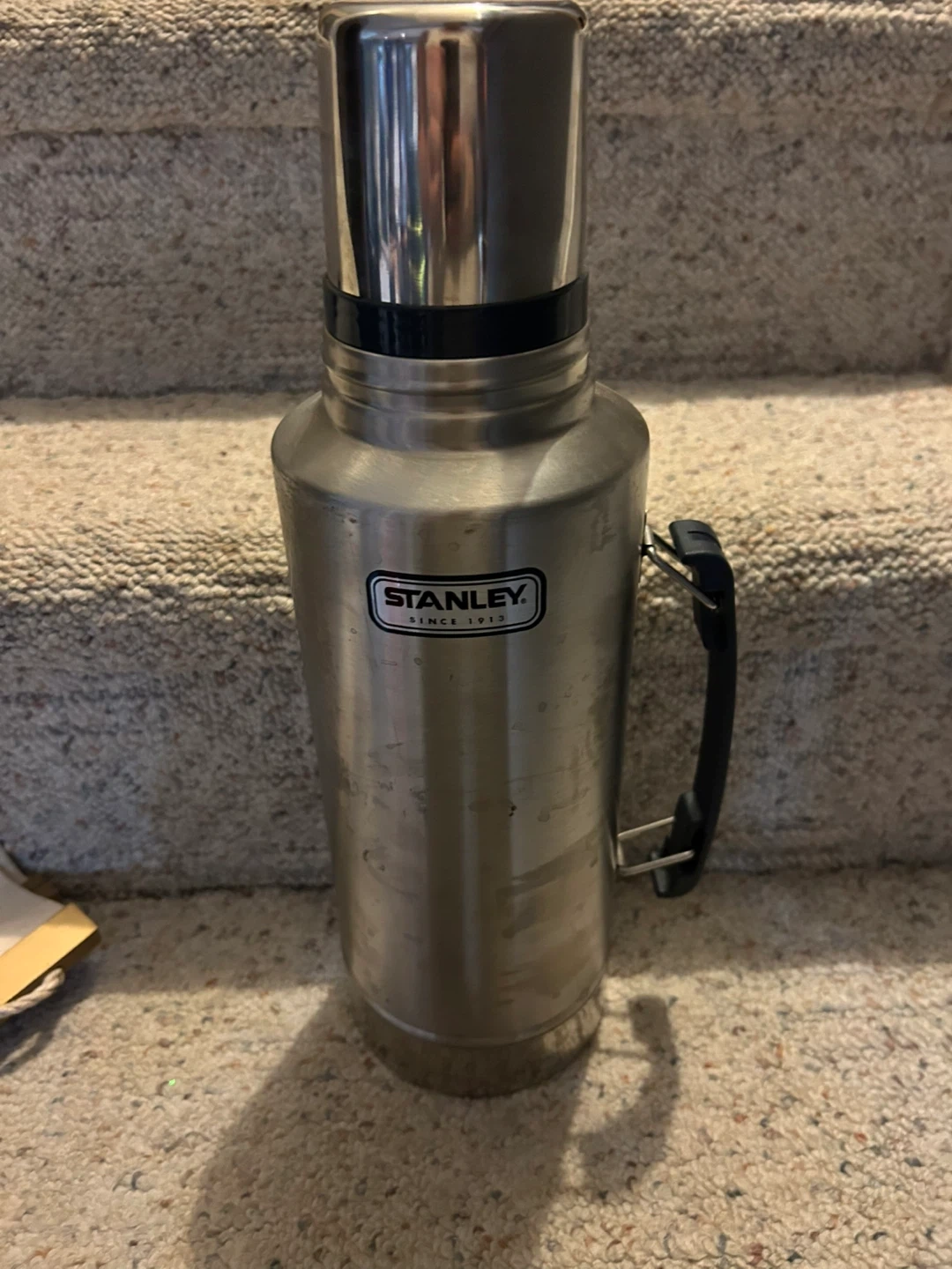 10Selling a Stanley thermos. It's a 2 quart or 1.9 liter size. A great thermos for keeping beverages hot or cold!