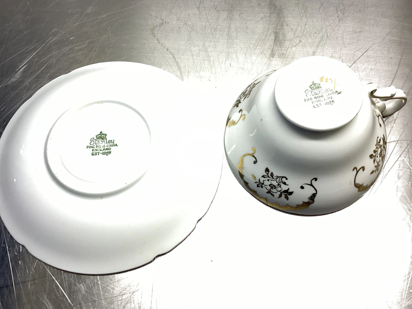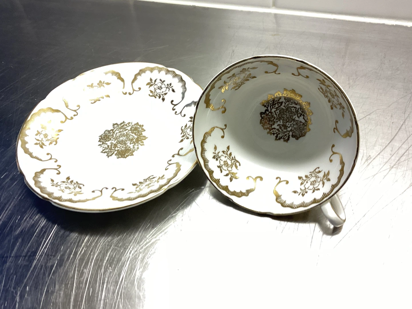 Beautiful gold and white bone china cup and saucer decorated with gold colour clam shaped designs