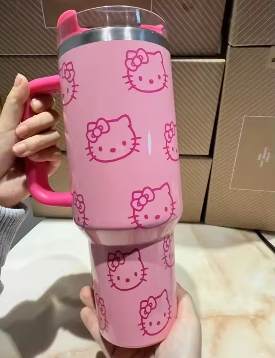 Pink Hello Kitty design. Vacuum insulated. Features a handle. Keeps drinks cold or hot. Delivery only. Unused Serious buyers only