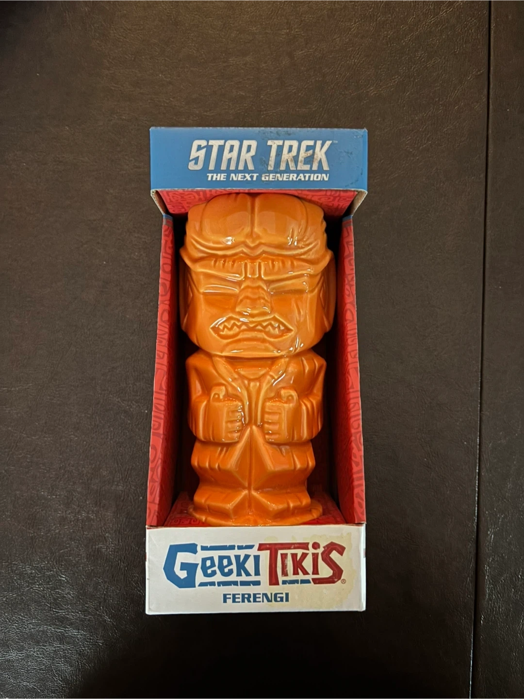 31Selling a brand new, in-box Geeki Tikis mug featuring a Ferengi from Star Trek: The Next Generation! This unique tiki-style mug is perfect for any Star Trek fan or tiki collector. Get your hands on this awesome piece!