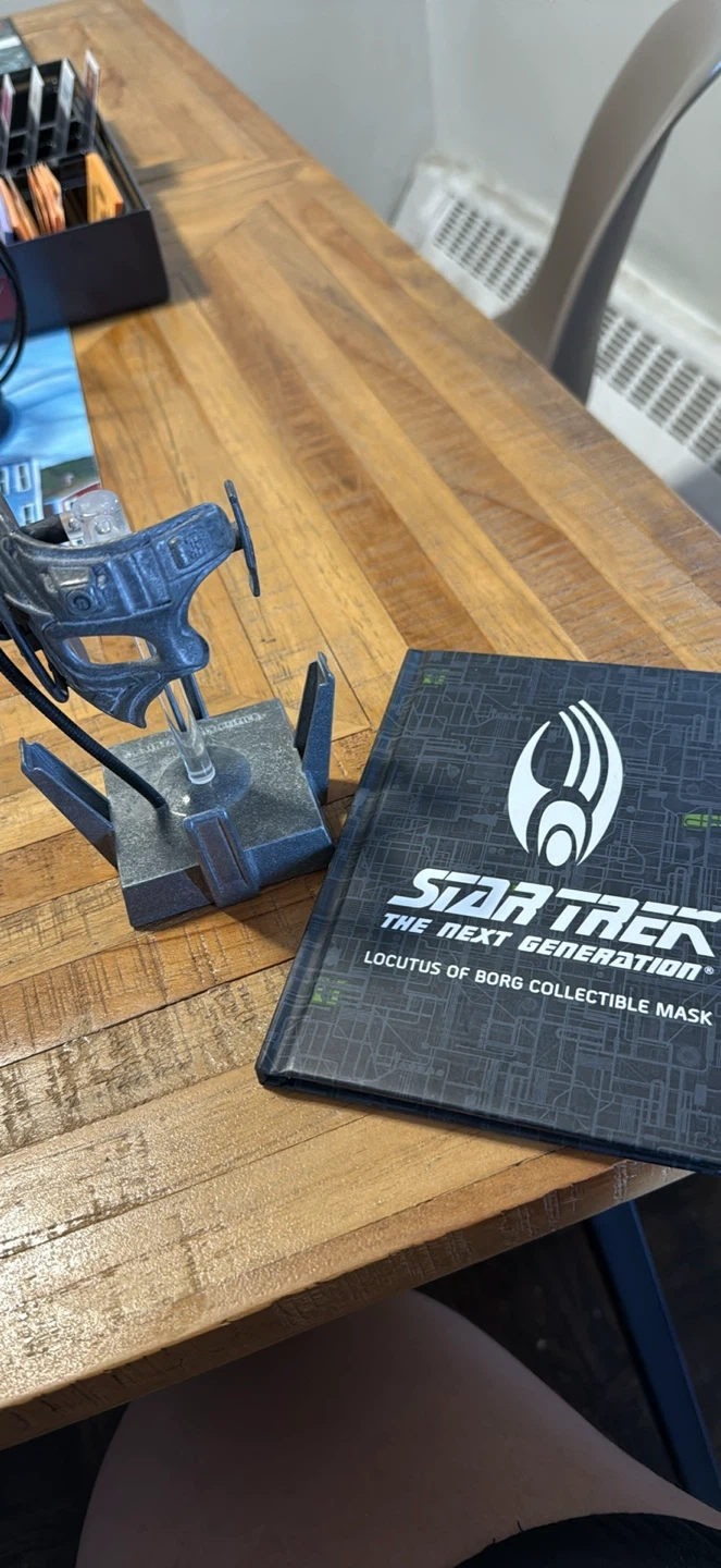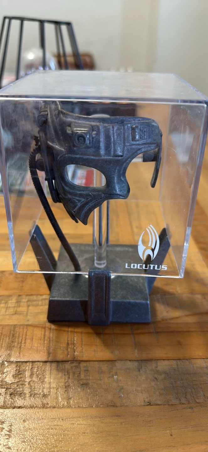 Selling a Star Trek: The Next Generation Locutus of Borg Collectible Mask. It's in great condition and comes with the display stand, and the book. Doesn’t have the box but still turns on and talks