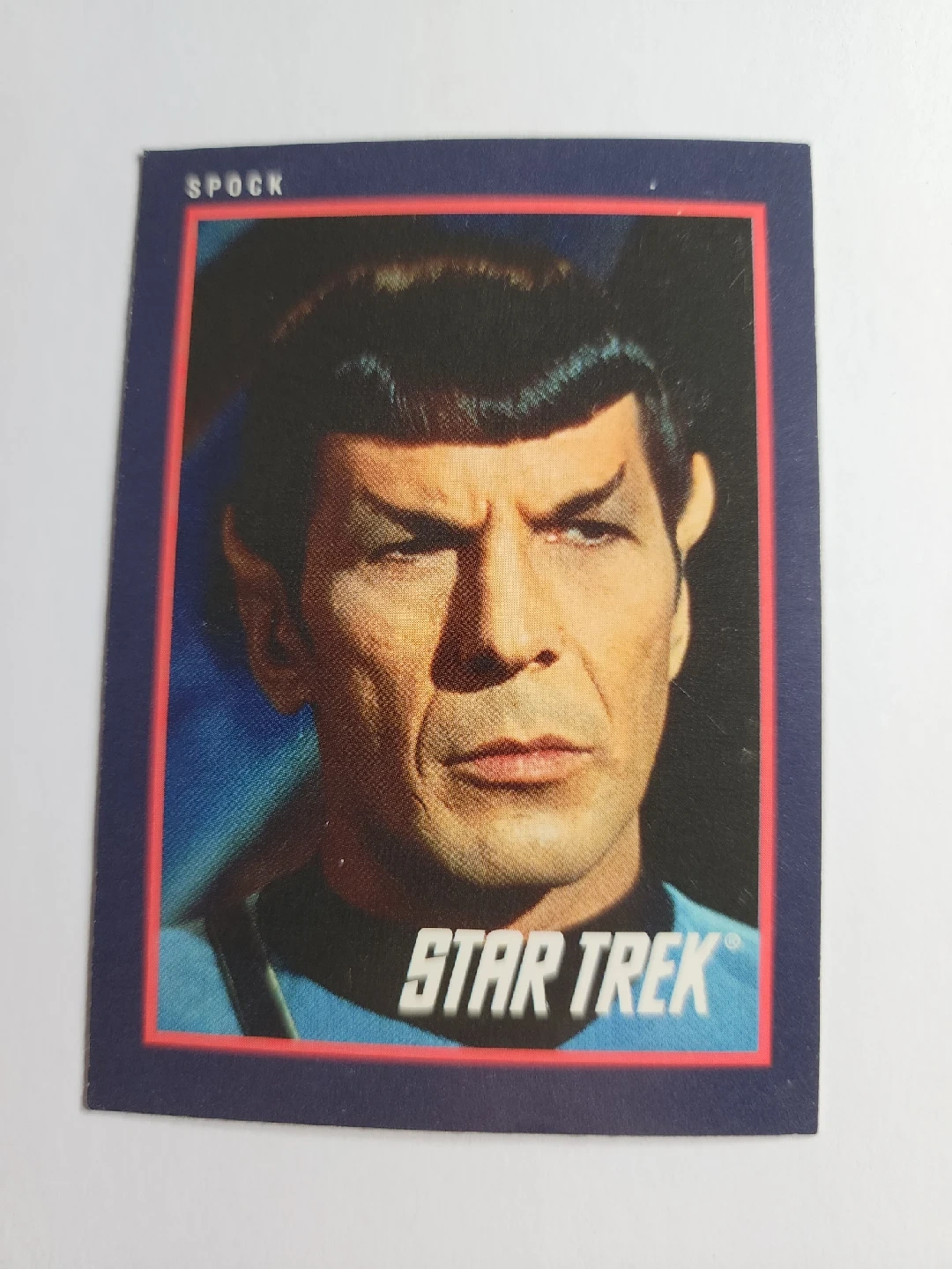 137Selling a Star Trek trading card featuring Spock. It's from the 25th Anniversary collection. The back of the card has a description of Spock's role on the U.S.S. Enterprise and his unique characteristics as a Vulcan.