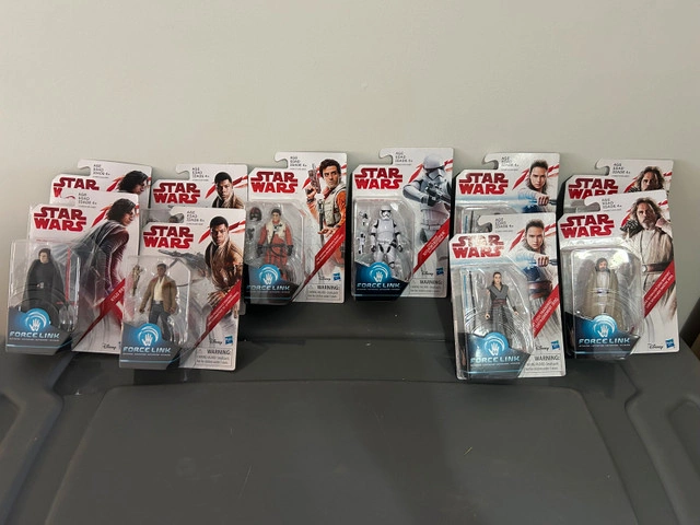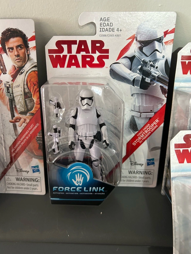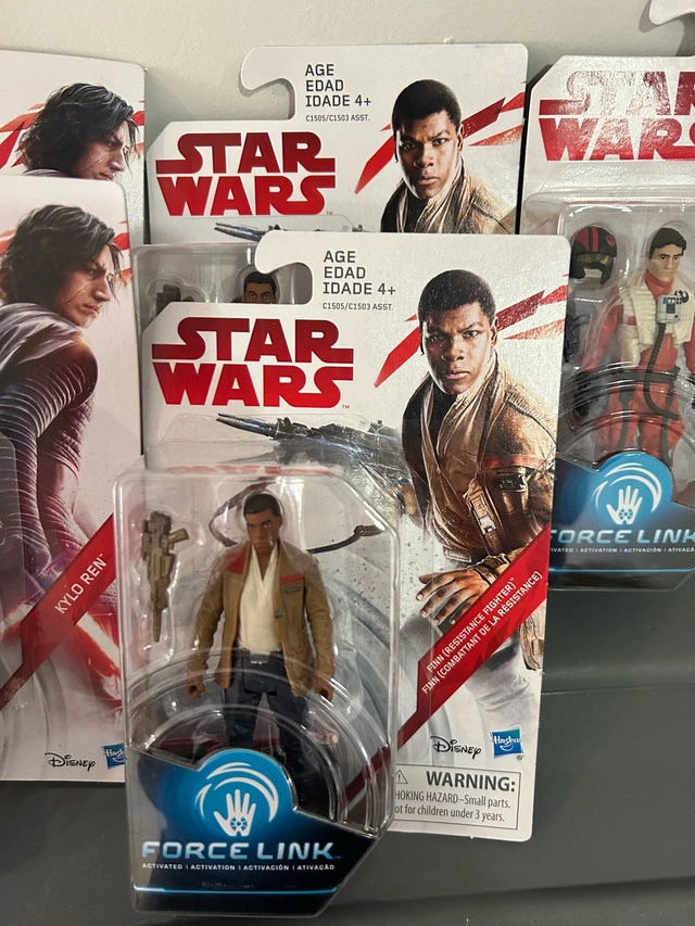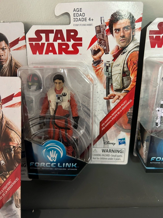 15610 available - $10 each Sold separately or as a lot Kyle REN - 2 Finn - 2 Poe Dameron - 1 Stormtrooper - 1 Rey - 2 Luke Skywalker - 2 I am offering a collection of new, carded Star Wars Force Link figurines. These highly detailed collectibles feature characters from the Star Wars universe and are perfect for both collectors and fans alike. Each figure is brand new and sealed in its original packaging, ensuring pristine condition. * Characters include Kylo Ren, Finn, Poe Dameron, and more. * Each figure is part of the Force Link series.