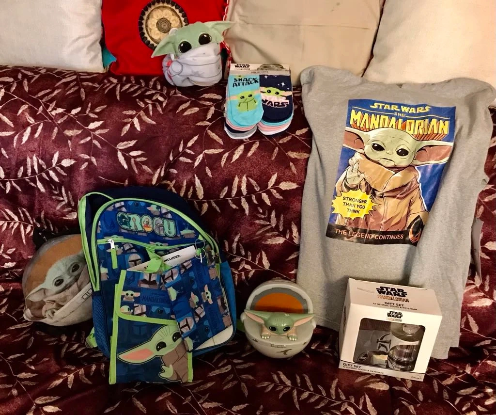 60Selling a Star Wars Grogu (Baby Yoda) bundle! Includes: - Grogu backpack - The Mandalorian t-shirt - Snack Attack socks - Gift set - piggy bank - mini pillow backpack - Grogu puppet Makes a great Christmas gift for a true fan.