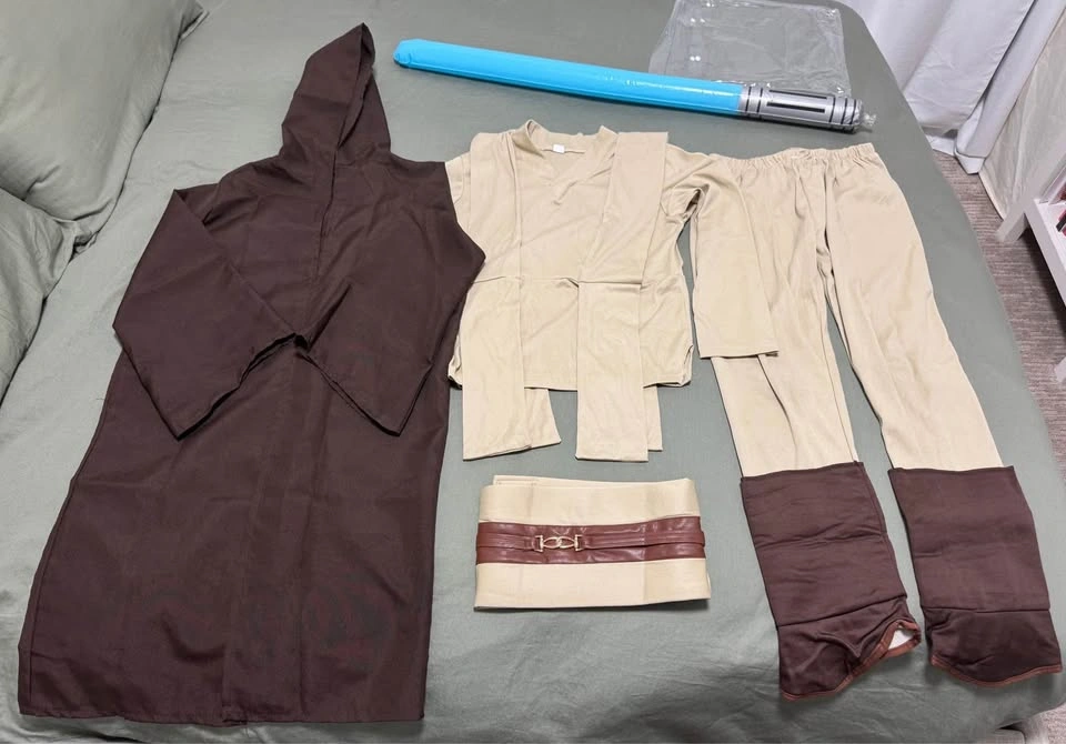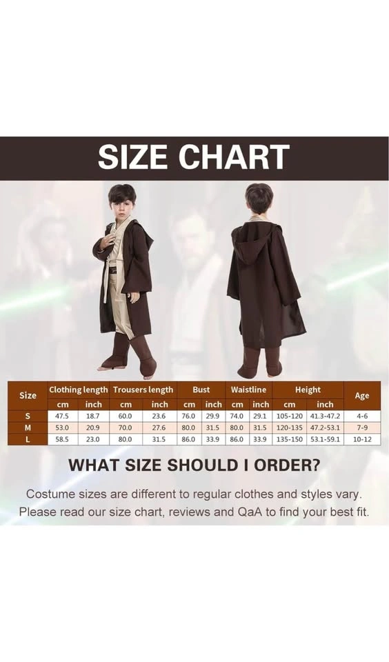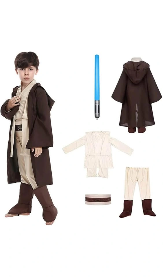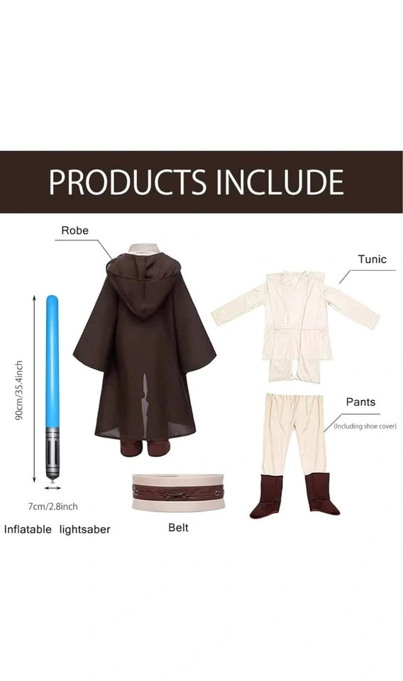 Need a Star Wars Jedi Knight costume for Halloween ๐? We have one in the large size. See pictures for measurements. Inflatable Light Saber might have a slow leak, but holds air still. Fabric type 100% Polyester Care instructions Machine Wash (main parts), with possible additional instructions for the belt Package: Full cosplay set including hooded robe + inner outerwear + trousers with shoe covers + belt + inflatable props, user-friendly details and high quality, a must-have for parties. High Quality Material: Polyester, light and comfortable to wear. The costume material is safe and environmentally friendly to avoid skin irritation, non-toxic and tasteless, no fading. Children's jumpsuit with separate hood, easy to put on or take off the hood for eating or playing. Superhero cosplay costume that will make you come to life like a character at a Halloween party and will be irresistible to your child. Occasion: Costume is suitable for fancy dress parties, carnivals, Easter, Halloween, cosplay costumes, children's gift, birthday gift or party props. No smoking/ no pet home Located on Middleton Mountain in Vernon Cash only.