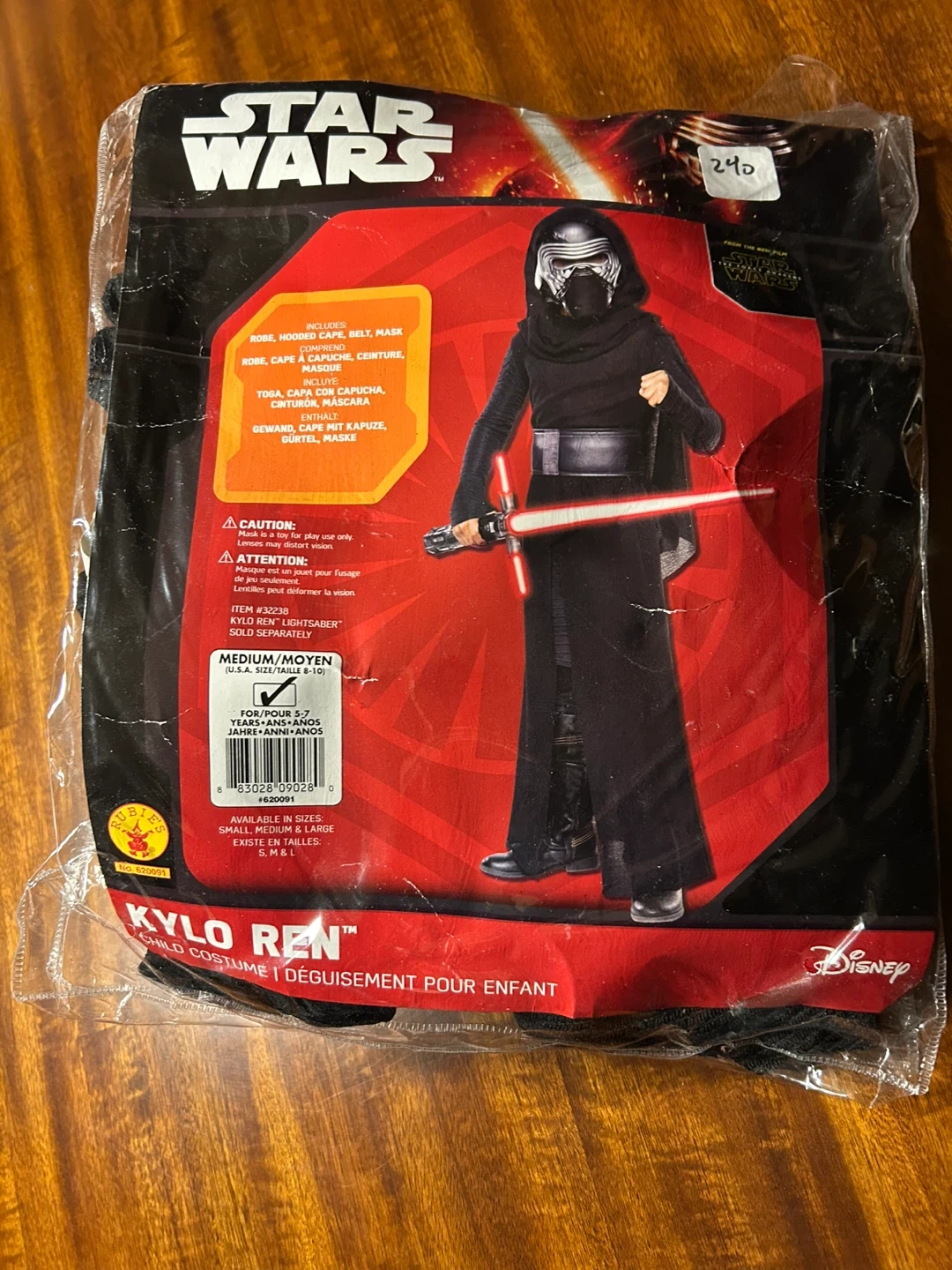 71Selling a Kylo Ren child costume from Star Wars! This is a size medium 8-10 and includes the robe, hood with cape, belt, and mask. Perfect for dress-up or Halloween! Does not include light sabre Worn once 💵 Bundle with any of my other listings for a discount. 🤝 Pickup at a public location in Fort Erie. 📦 Bundled orders over $75 — can arrange public location delivery within the Niagara region. 💰Cash or E-transfer accepted.