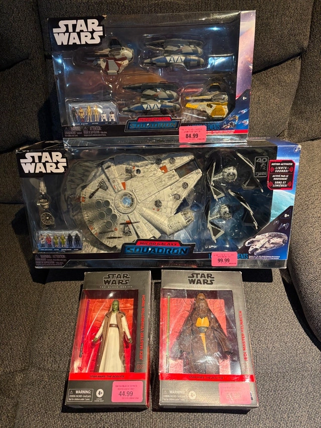 5Amazing Star Wars collector's bundle, all new in box! Micro Galaxy Squadron - Battle of Coruscant Battle Pack (D-B) Micro Galaxy Squadron - Destroy the Death Star Battle Pack Star Wars The Black Series - Jedi Master Vernestra Rwoh Star Wars The Black Series - Jedi Master Kelnacca Perfect for fans or collectors. Local pickup preferred. No returns unless significantly not as described. Message for details!