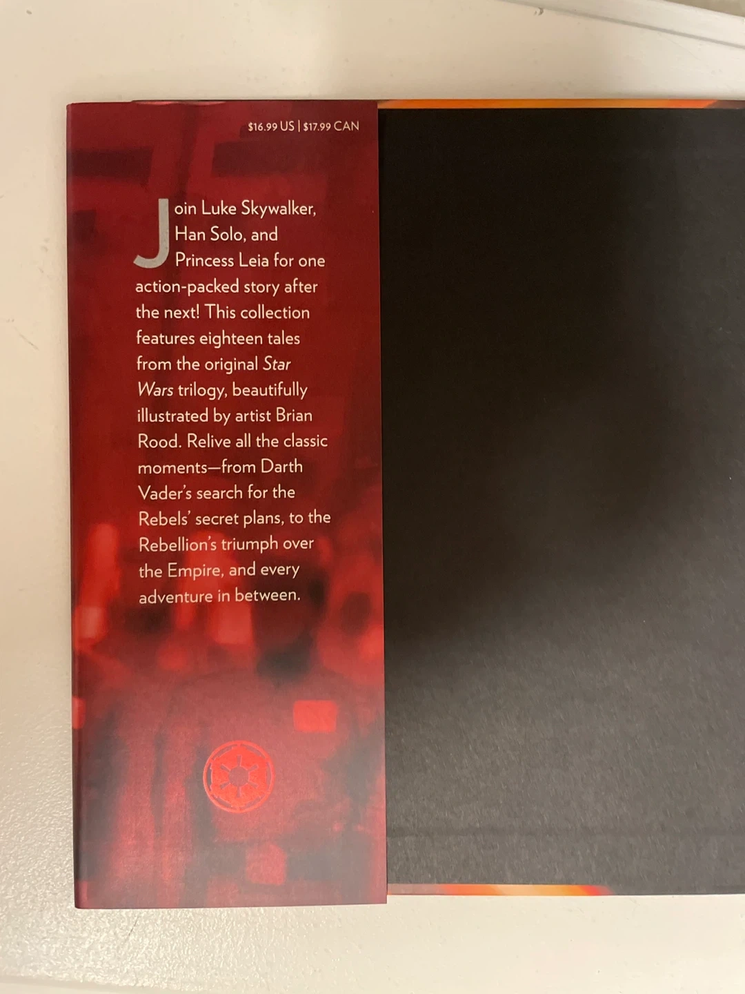 29Selling a Star Wars book called "The Original Trilogy Stories"! It features eighteen tales from the original Star Wars trilogy, beautifully illustrated by artist Brian Rood. Relive all the classic moments from Darth Vader's search for the Rebels' secret plans, to the Rebellion's triumph over the Empire, and every adventure in between