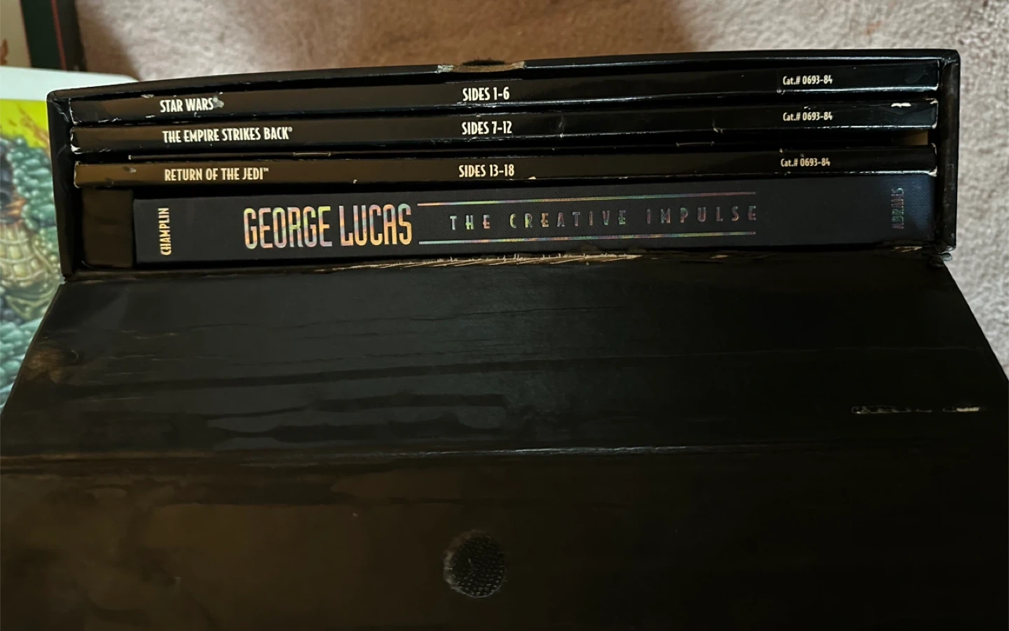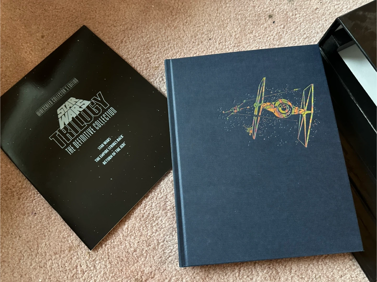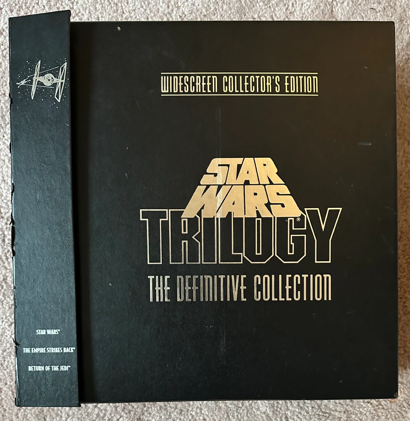 60This is a must have for any Star Wars collector. The Star Wars - Definitive Collection - Widescreen LaserDisc set is the highest quality release of the original trilogy, with 9 CAV discs, and PCM Dolby Pro-Logic encoded digital stereo sound. Remastered with THX certification, these are made from the same masters as the Faces edition, but in higher video quality and include a limited edition Book. In 1997 George Lucas messed around with CGI and plot changes to release the Special Edition trilogy, and to this day refuses to re-release the original movies, as found in this set. The outer box has a bit of wear, but it still very presentable and the movie discs are in great shape. I have priced this accordingly. Asking $100. A New Hope The Empire Strikes Back Return of the Jedi