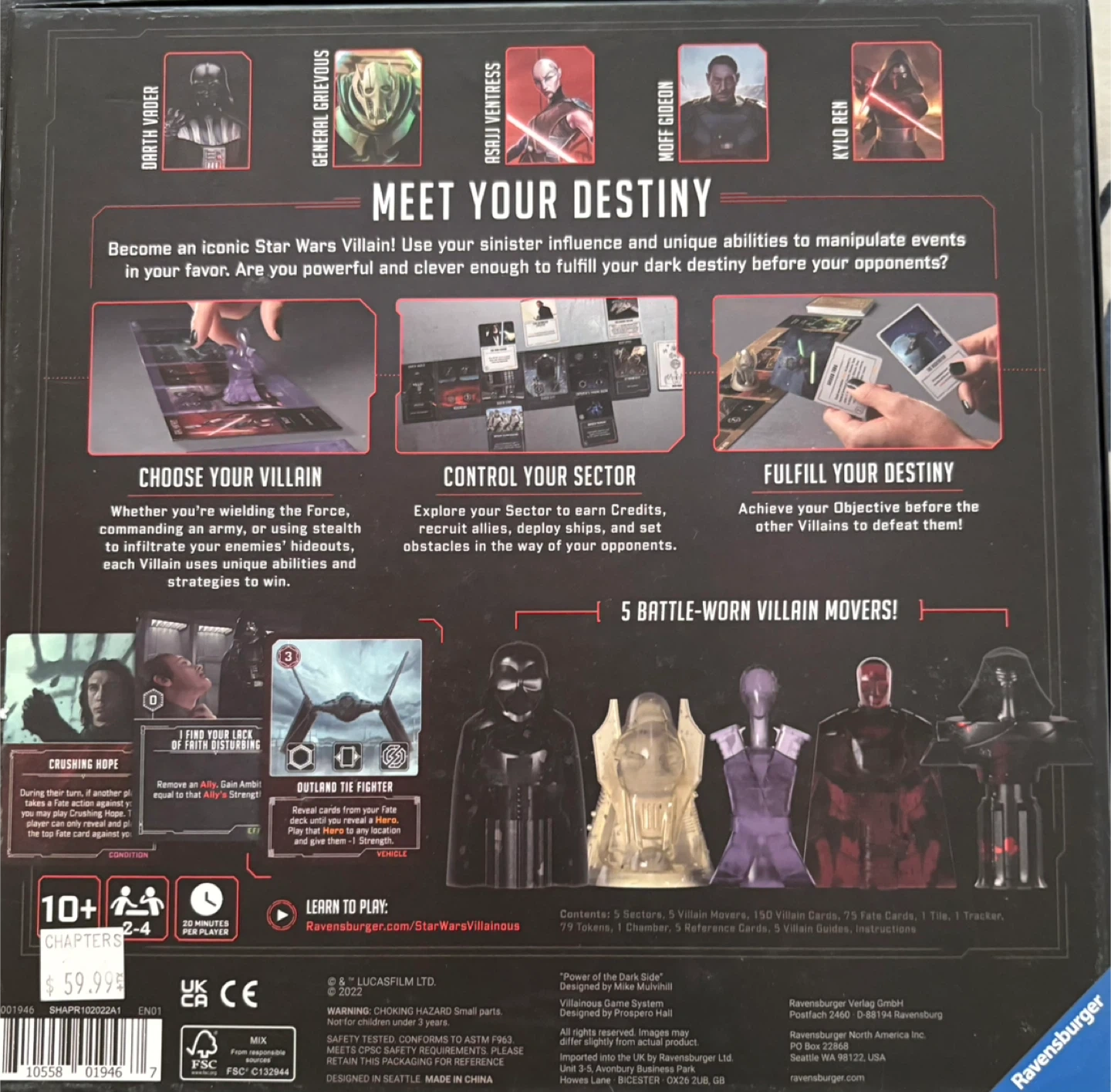 10Selling the Star Wars Villainous: Power of the Dark Side board game! It's in great shape and includes everything you need to embrace your inner villain. Perfect for game nights with friends and family, ages 10+ and plays in 20-40 minutes. Become an iconic Star Wars villain and manipulate events in your favour!