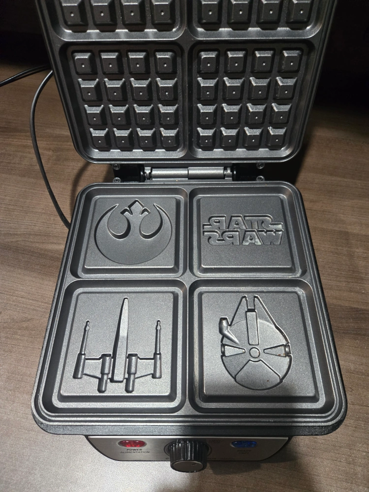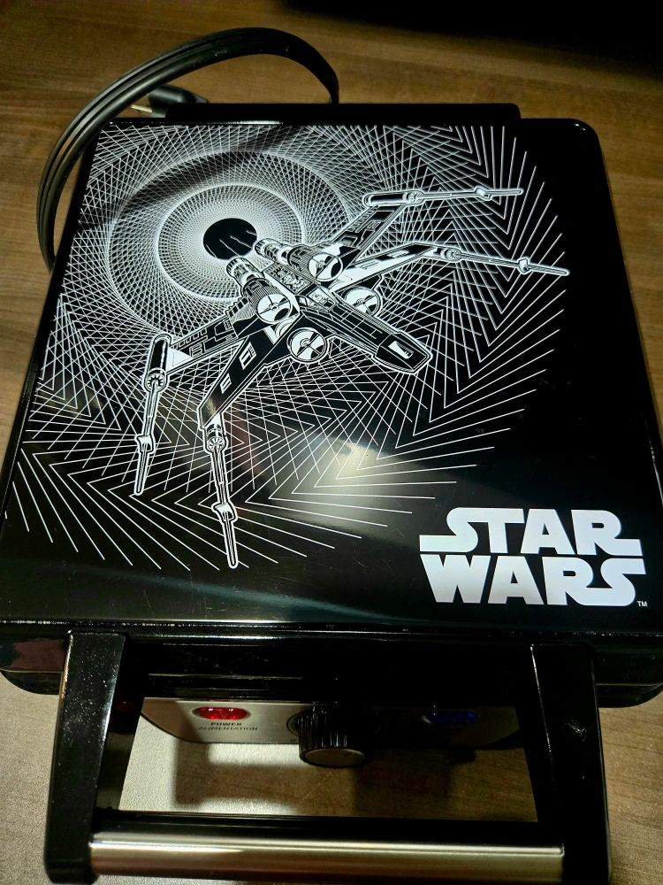 Make some waffles with a Star Wars theme! This waffle maker has different Star Wars designs on the plates. It's in great condition and ready for a new home