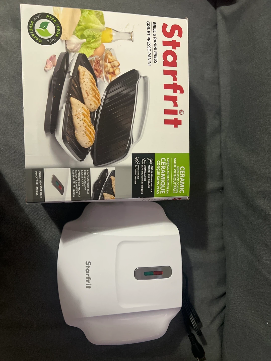 105Selling a Starfrit grill and panini press! It has a ceramic non-stick coating made without PFAS. It also features a removable drip tray to collect oil and excess juices. The box is included!