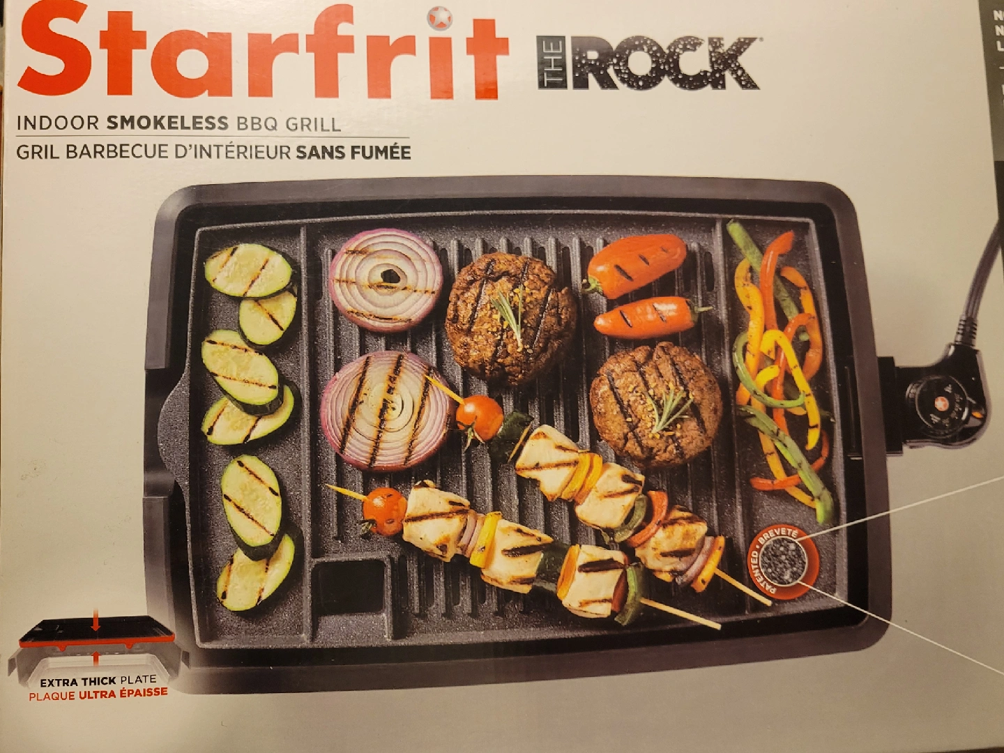 20Selling a Starfrit The Rock indoor smokeless BBQ grill! It's perfect for grilling indoors without all the smoke. The grill features an extra thick plate for even cooking. It's great for barbecuing indoors any time of year