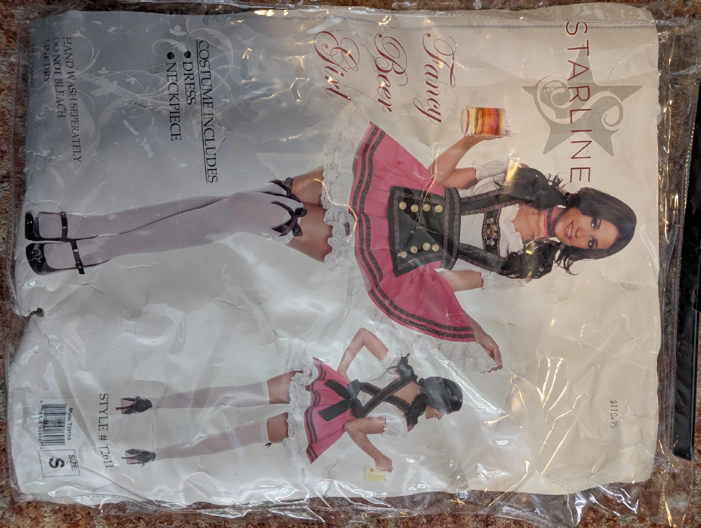 60Selling a Starline "Fancy Beer Girl" costume. It includes the dress. Missing neckpiece. Size is small. Perfect for a party or Halloween!