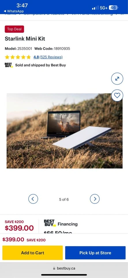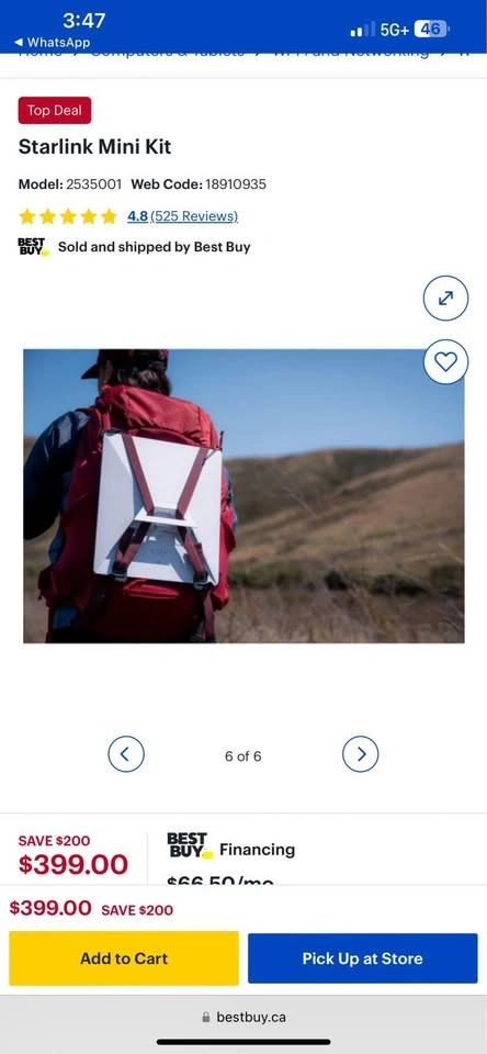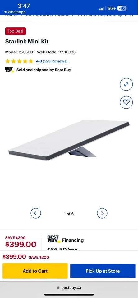 15Brand new, no account locked to it Just set up and start using. All-in-one, portable kit designed to deliver high-speed, low-latency internet connectivity, even in the rural and remote locations Includes an integrated router, kickstand, pipe adapter, power cable and power supply for easy setup Compact design easily fits in a backpack and provides on-the-go connectivity Integrated router features Wi-Fi 5 (802.11ac) and an Ethernet port for connecting third-party routers or mesh systems Low power consumption, averaging 25W to 40W ensures energy-efficient performance Engineered by SpaceX (the only satellite operator able to launch its own satellites as needed), Starlink satellites are constantly updated with the newest technology Requires a clear view of sky Starlink App lets you easily find an unobstructed view of the sky, find the best install location, explore mounts and accessories, and manage your account Choose a service plan (required) that fits your needs, regardless of how remote your location is No long-term contracts required. You can cancel service at any time.