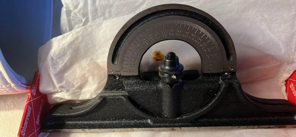 60$175 or best offer. Material Cast Iron Brand: L. S. Starrett Co.Ltd Jedburgh Scotland Craftsman DJ - USA The protractor head has revolving turrets with direct-reading double graduations, a full 0 to 180° range in opposite directions which permits accurate and quick direct reading of angles above or below the blade. Able to withstand even the harshest environments as our protractor heads are designed to last a lifetime. They are very reliable and perfect for any project you take on. The reversible protractor head is made from cast iron with a black wrinkle finish-chrome on turret. It can absorb a lot of energy without breaking, making it a tough and resilient product for everyday use. The spirit level indicates when the base reference surface is level - a feature not usually available on comparable protractors Vintage units - Pick up in Corunna